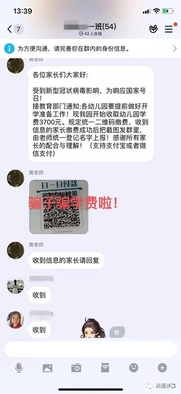老师、家长请注意:骗子开始借“肺炎疫情”疯狂行骗,手法升级! 如果孩子班主任 突然在班级QQ微信群里 收取费用 请务必当心