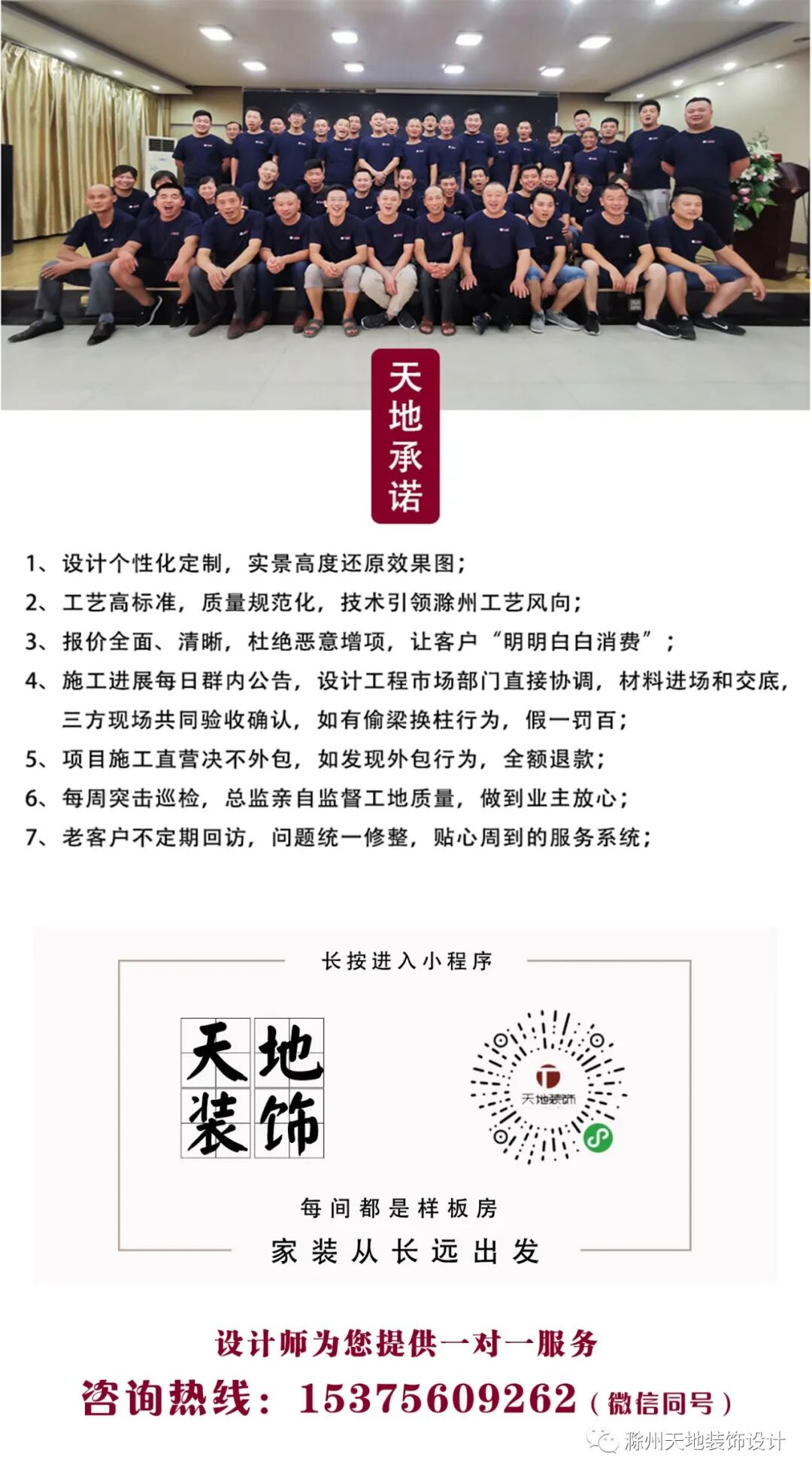家居以人为本,每位屋主对自己家居的要求也不一样,我们通过一对一的沟通设计,在制定方案时就将屋主的全部需求 以及屋主忽略的部分都考虑到,通过施工工艺将效果图百分百还原,死磕质量,从长远的角度为您打造舒适安心的家居生活。 ”