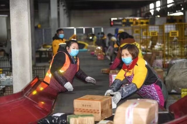 快递转运中心内所有工作人员也必须按照《员工防疫指南》的要求,上下班测量体温、扫码、在工作区域必须全程佩戴口罩、手套等。