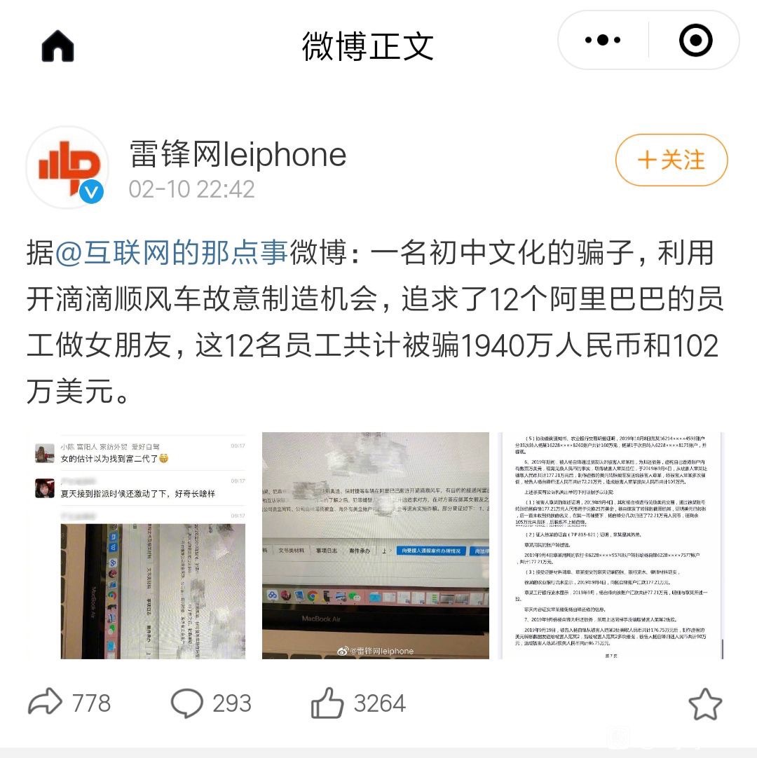 一个初中文化中年男子,初中文化,开顺风车骗了12个阿里的女员工累积骗了将近有5000万元人民币虽然归还了一部分但最终还是造成被害人损失金额达1940万人民币,以及102万美元。这到底什么情况?单纯靠魅力???