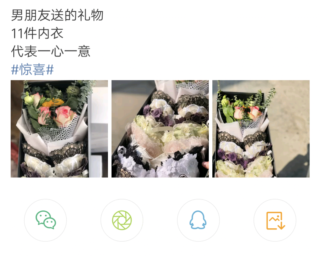 现在男生送女朋友礼物真是绝了,11件内衣,颜色款式还真不赖,滁州不会送礼物的男生们学着点