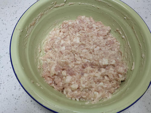 2、做炸丸子,料水和玉米淀粉是必不可少的两味料,一定不要忘了放。