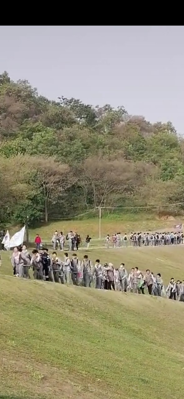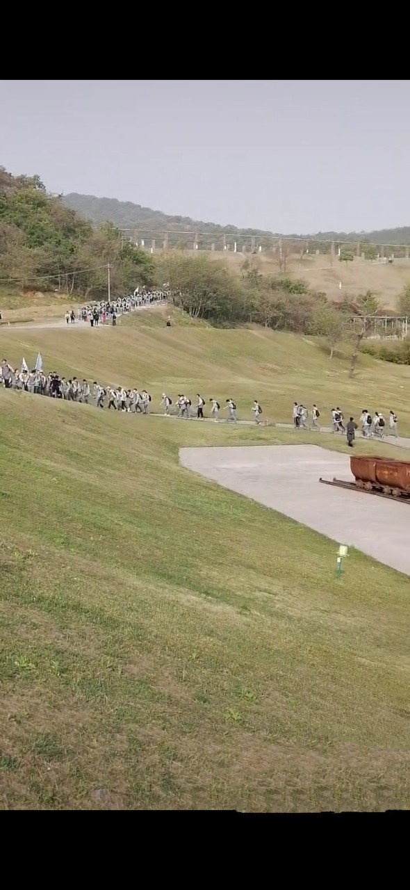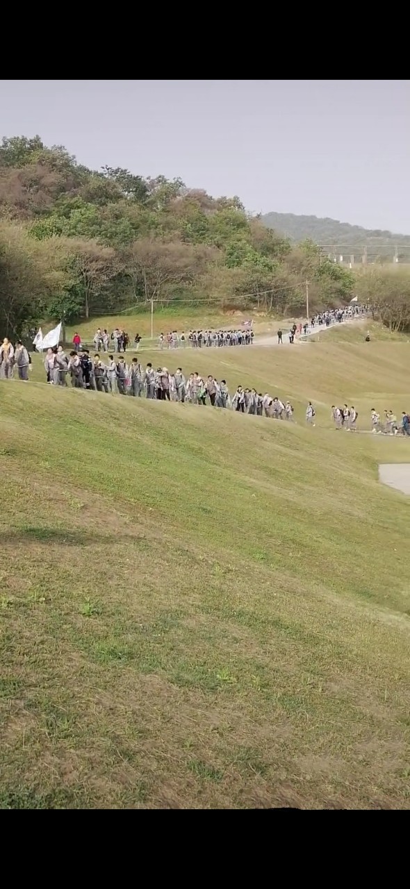 今天滁州中学高中学生春游,从矿山公园,铜矿停车场后面,尾沙坝,向琅琊山顶进发!
