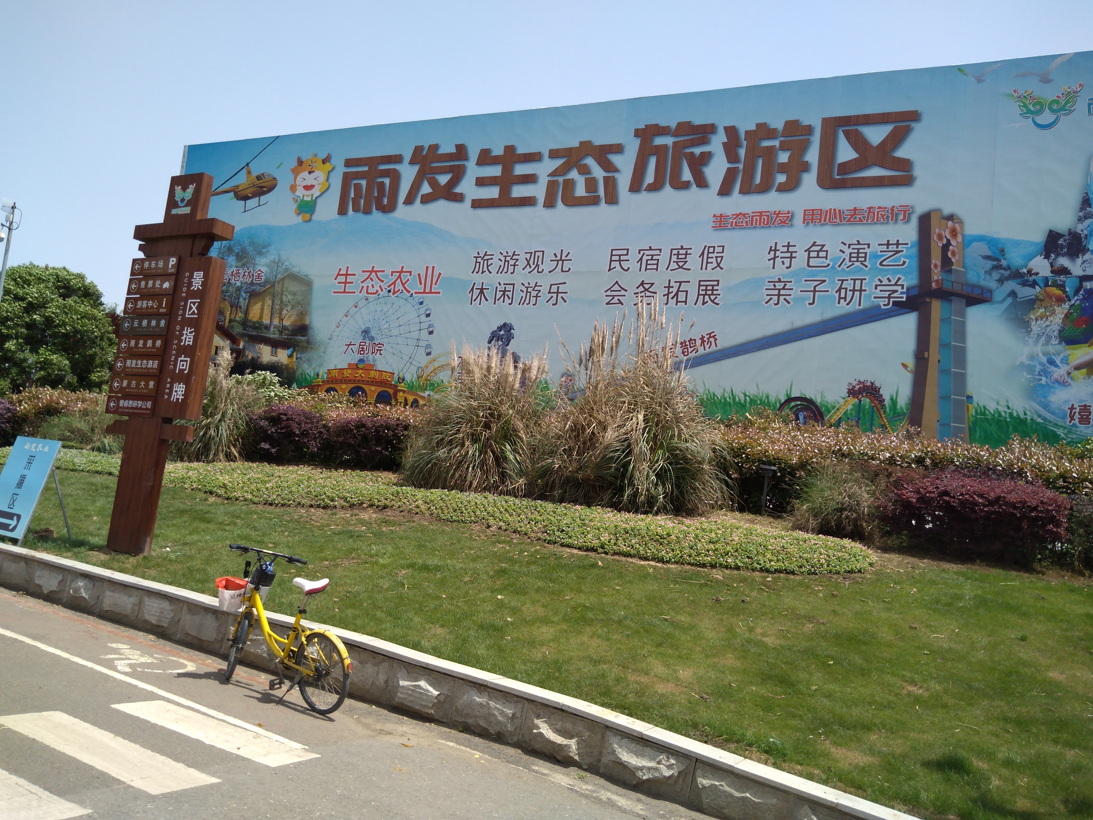 上周幼儿园组织的去春游的地方,本来我想骑小黄车去和她汇合的,但因天气原因我的小黄车没有出行,从此这个雨发生态园就我心心念念想去的一个地方。今天天气好,早7点从单位出发,先到陈浅,沿滁河大堤到浦口的山贡里滁河湿地公园,然后导航直达雨发生态园,骑行在宽阔平坦的大堤上,脚下是蜿蜒曲折流淌的滁水,旁边是苍翠挺拔的老山、九峰山,一列列风驰电掣的高铁列车从这山水之间驶过,骑行在这山水之间,不仅可以领略这优美的山水风光,还能感受到我们伟大祖国日新月异的变化。
