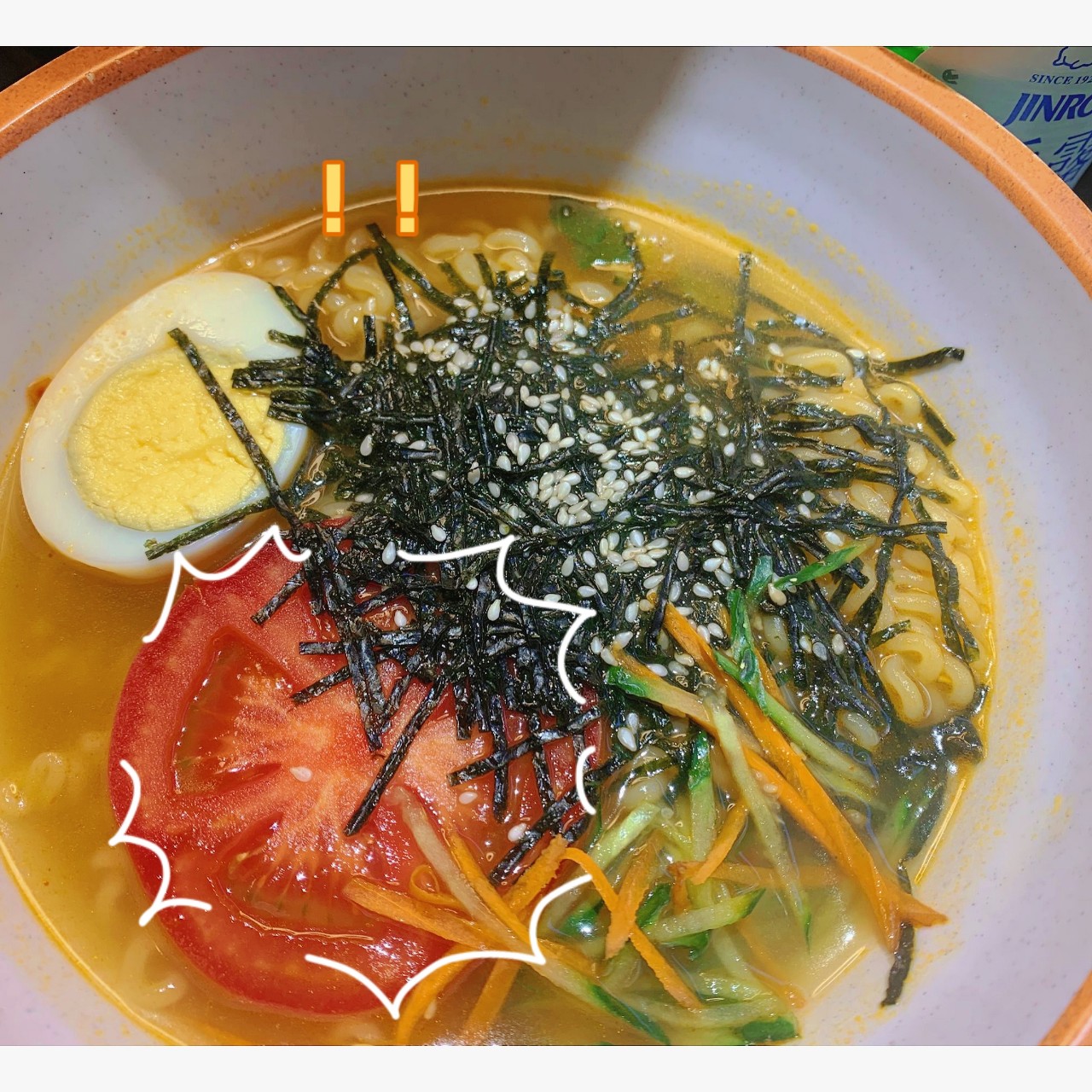 辛拉面一般口味有点淡,然后夹杂一点点辣,可能不是我觉得好吃的类型啦