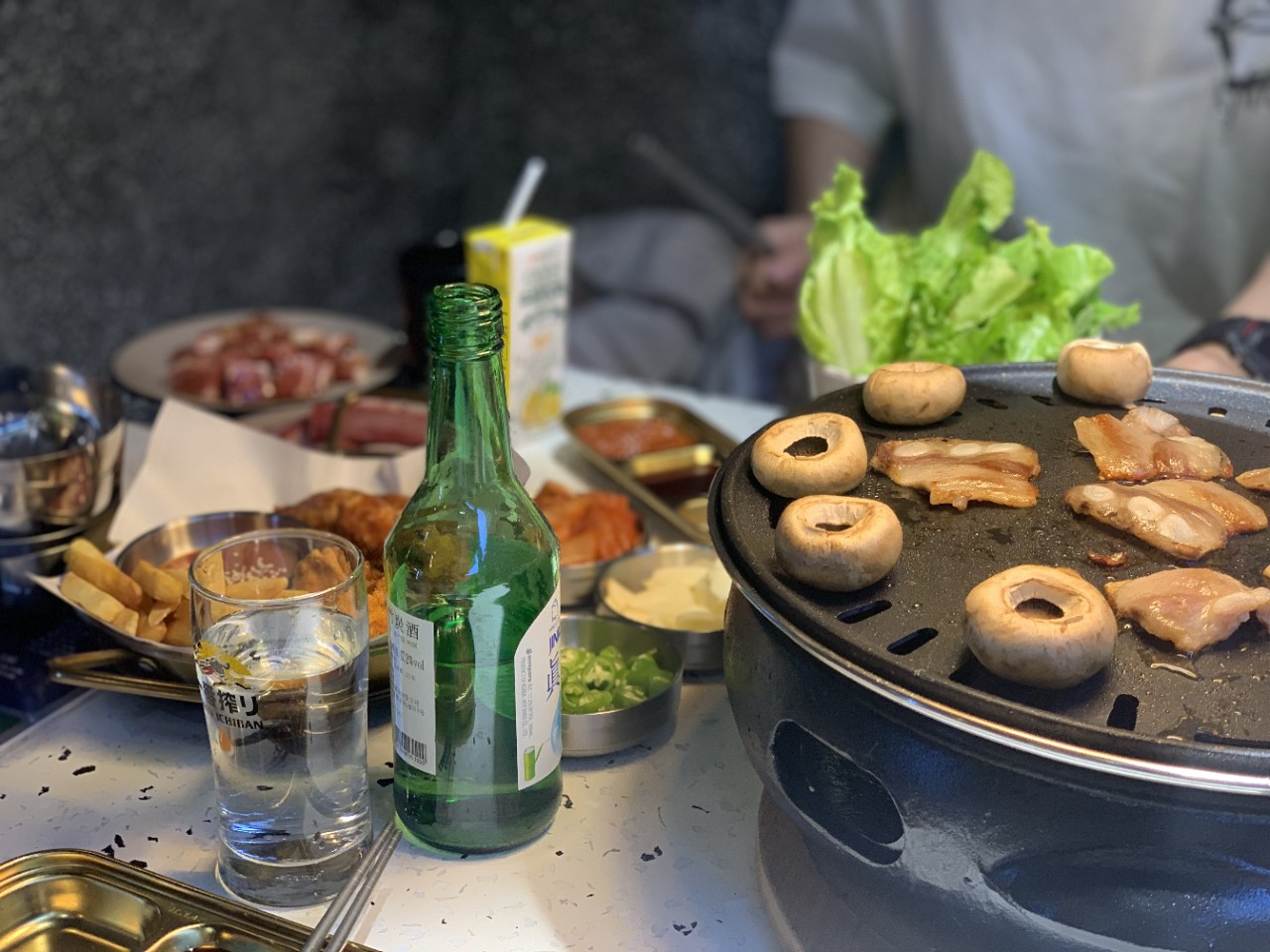 我们点了两瓶烧酒一瓶香蕉牛奶(不是特别想喝没必要点大小类似QQ 星)一瓶雪碧