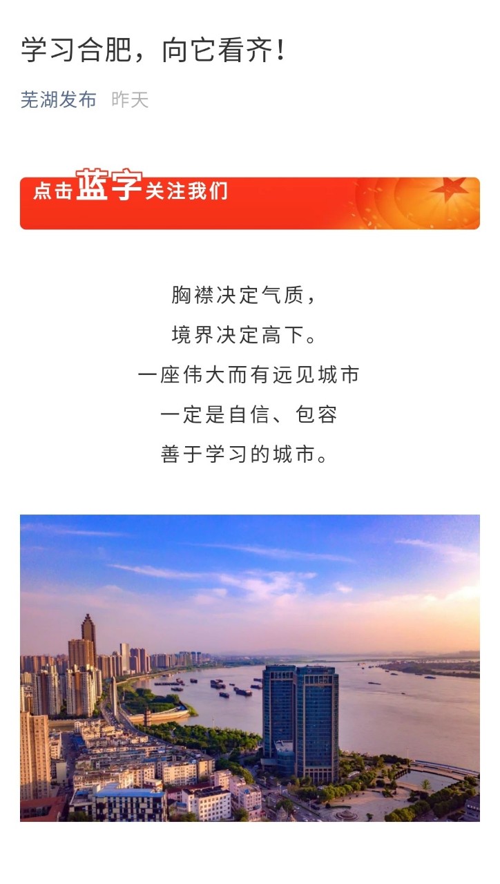 其实,对于普通人来讲,大可不必,无论不温不火的南京还是扶摇直上的合肥,都给大家带来了机会。聪明且有实力的人和城市面对新的风口和形势,已经在悄摸摸调整仓位了。比如芜湖,在wh人眼里,可能看合肥比滁州人看合肥还要不屑,然而别人现在官方居然放起了彩虹屁,居然提出要主动学习合肥,为啥?有利可图啊。