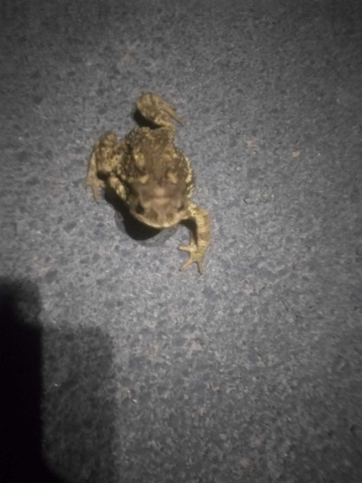 又路遇一只癞蛤蟆,路上偶尔有汽车路过,把它赶到路边草丛里,免遭车祸。