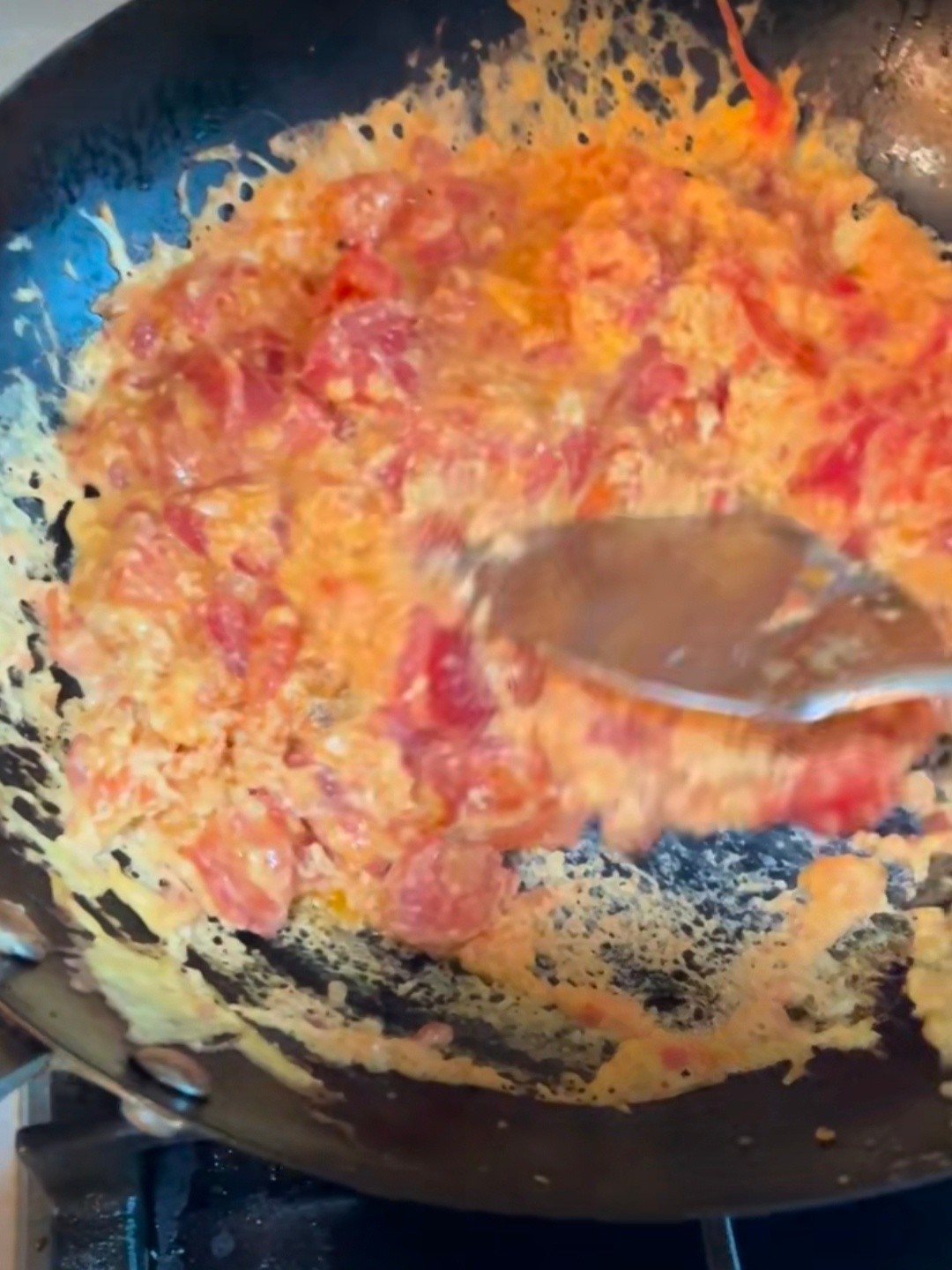 中午回家吃饭,看到老婆烧的这个番茄炒蛋,真是惊到我了。这烧的什么汗,个能吃,中午这菜我反正是一口没动,下回还是自己烧吧!