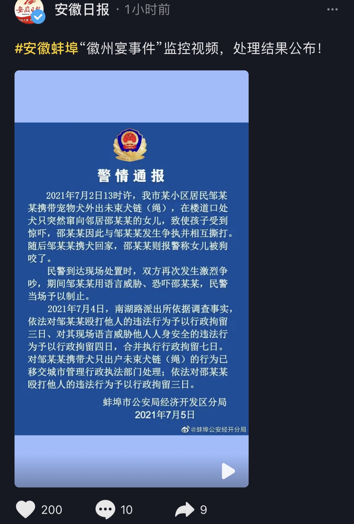 最近热门事件徽州宴,女子因遛狗纠纷,出言威胁辱骂市民,一个孩子的命在她眼里竟然没有一条狗值钱,明目张胆威胁