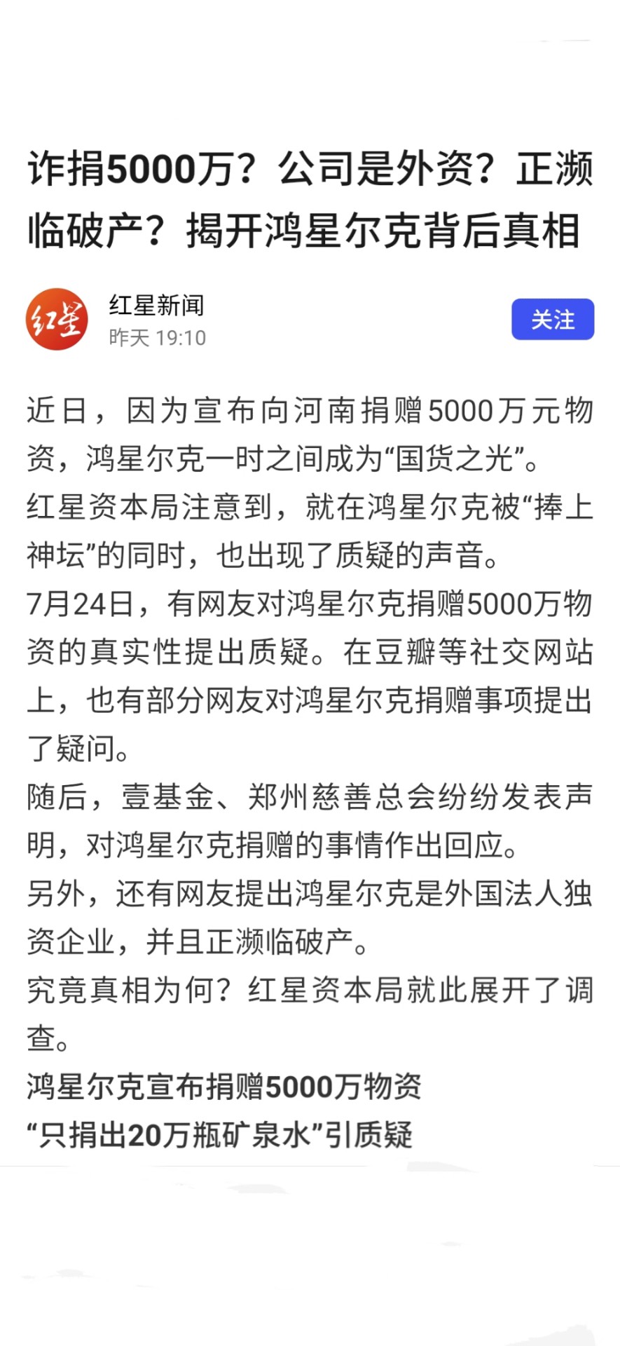 诈捐5000万?公司是外资?正濒临破产?揭开鸿星尔克背后的真相! |