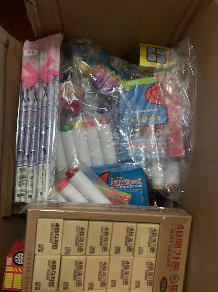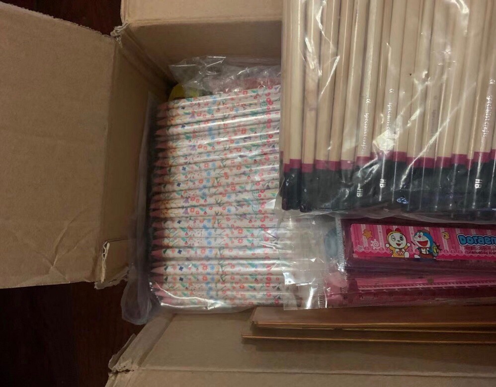书包1个、铅笔300支、橡皮60个、新华字典1本、各种画笔若干,饭盒、水杯、各种杂七杂八的大家随意看看吧!这些装备够上完小学了吧?