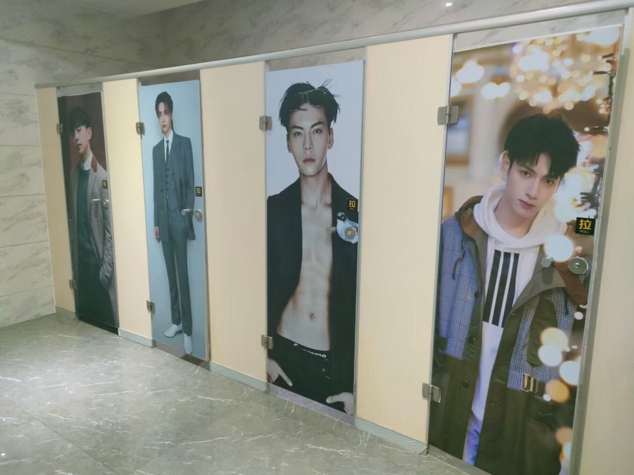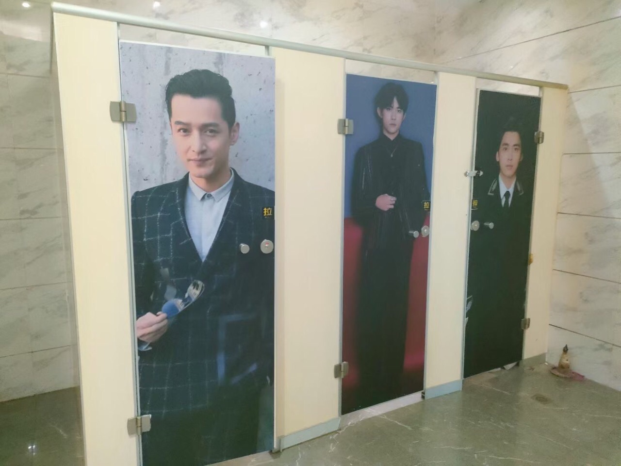 女厕所的门上都是男明星,估计男厕所的门上都是女明星吧?