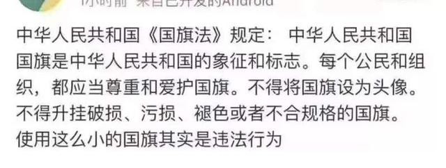 早在2015年9月3日,陕西省西安市司法局官方微博“@法治西安”就曾科普过:“只要不是带有恶意,用国旗做头像并不违法。”