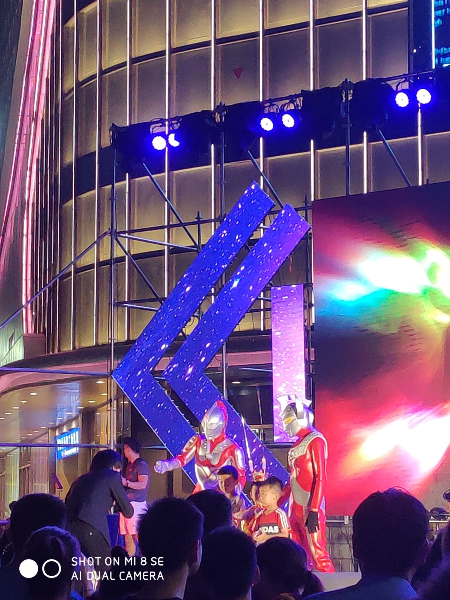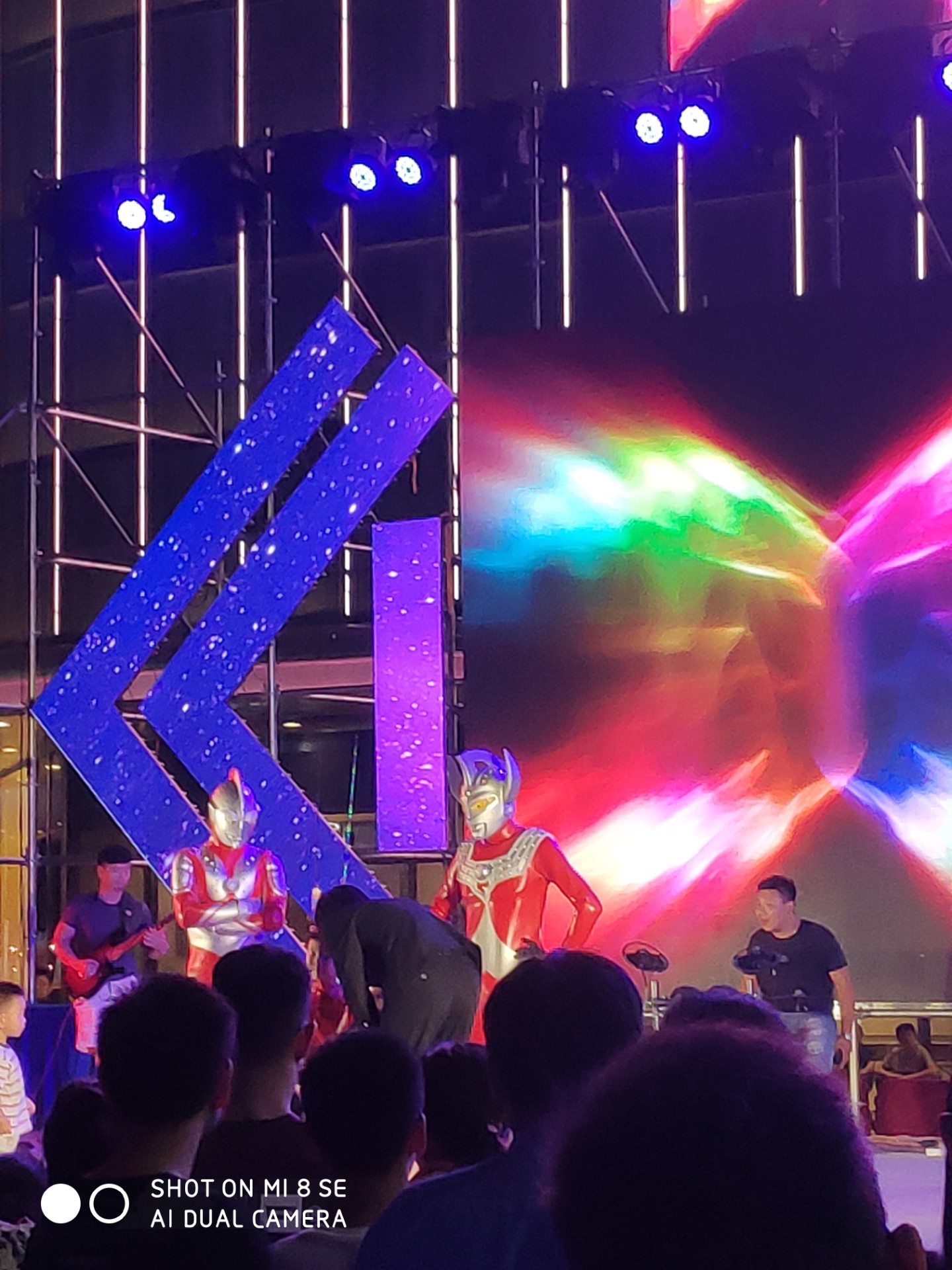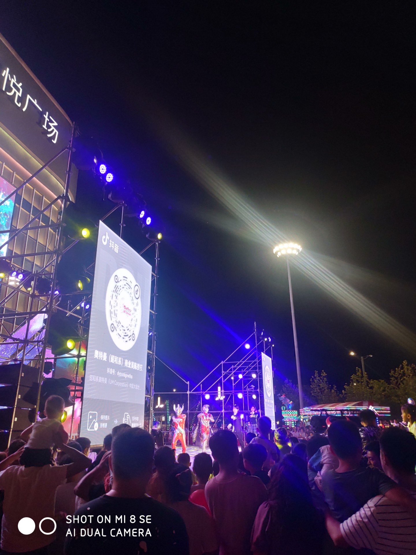 7点45分,伴随着一声泰罗片头曲,奥特曼登场了,孩纸们那个尖叫声与迫不及待,那叫一个激动。家长们也顾不得许多,扛起婴儿就往前头挤,好像抗起抢冲锋陷阵。