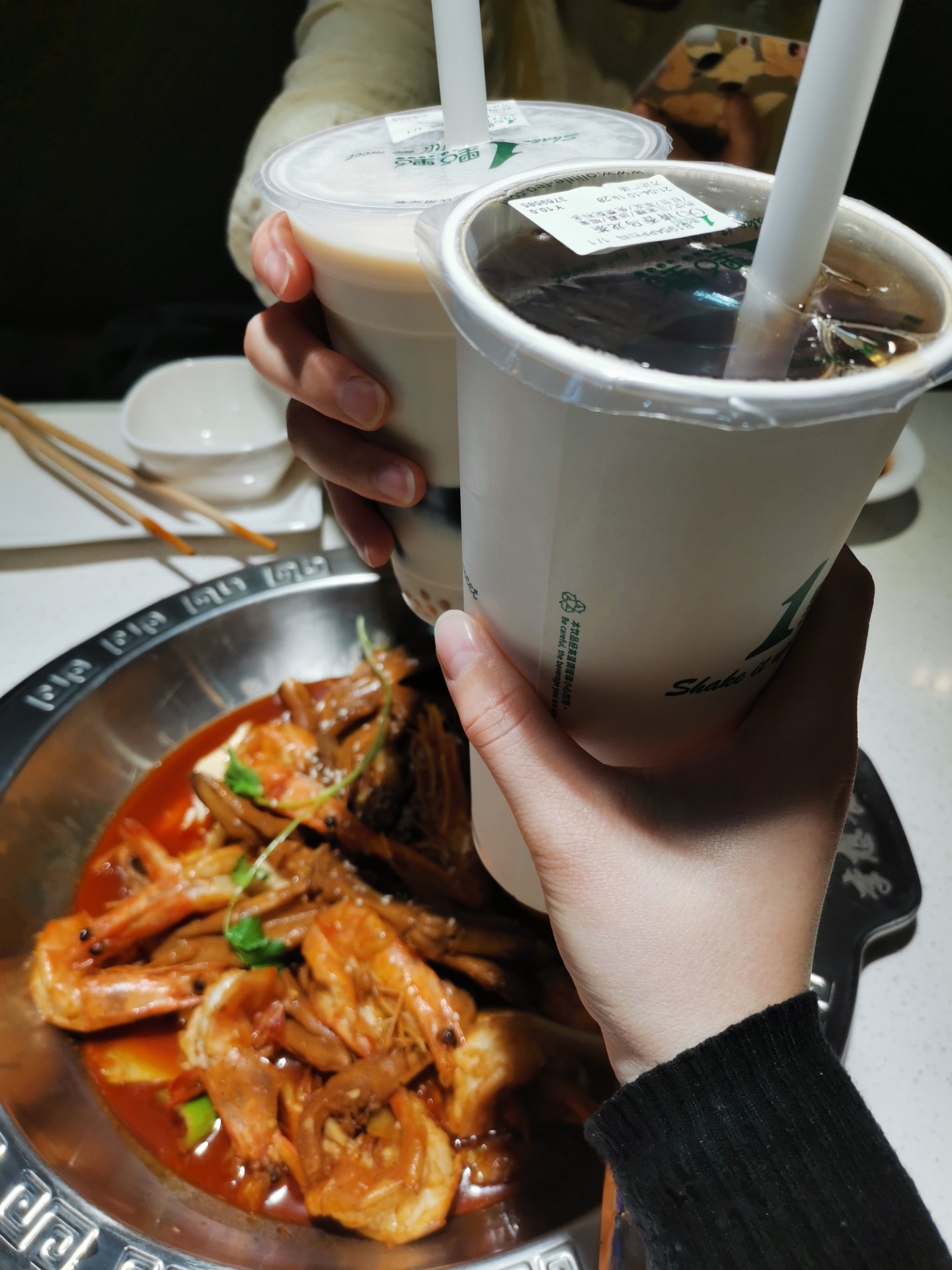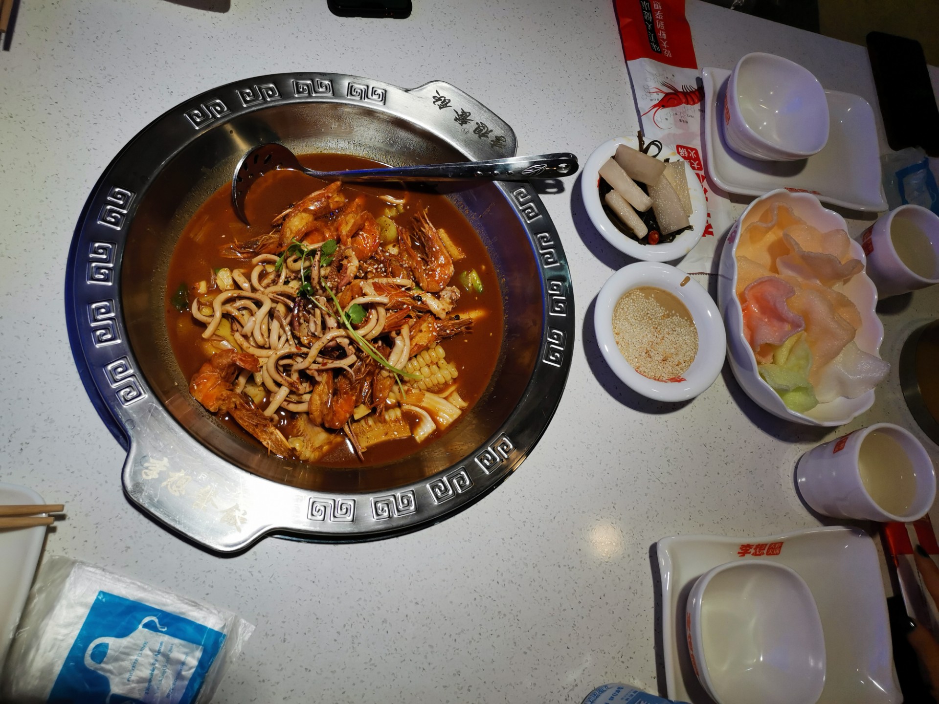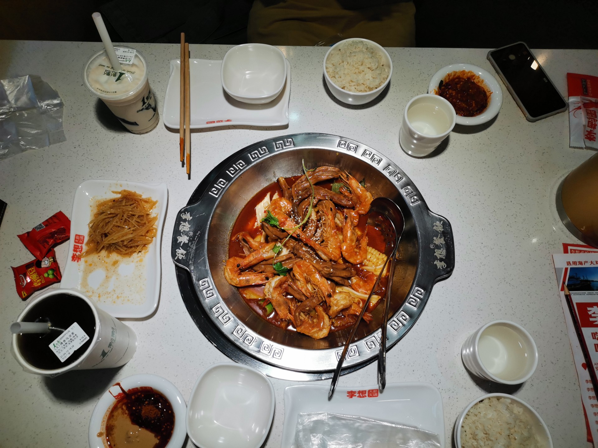 如果不够吃的友友可以在店里点几个菜,然后虾吃完加汤就变成煮火锅啦!