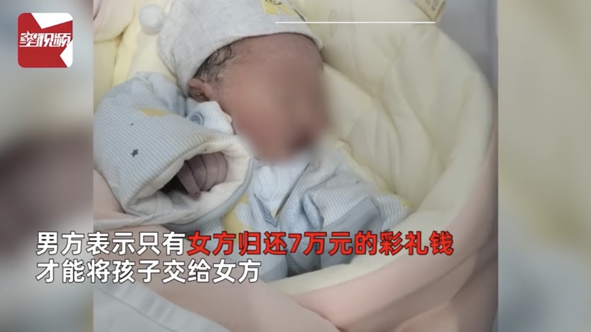 10月8日,家住甘肃天水市武山县的范彩云发微博称,她出生仅14个小时的孩子被已经分居的丈夫抱走,她跟男方多次沟通,男方表示只有女方归还7万元的彩礼钱,才能将孩子交给女方。范彩云的丈夫毛斌斌告诉记者,孩子在他那里很安全,事情正在协商中。10月12日,武山县妇联一工作人员告诉记者,孩子还在毛斌斌处,毛斌斌表示女方必须归还彩礼钱才能将孩子交给女方,然后再协议离婚,目前毛斌斌户籍所在的四门镇司法所已经介入进行调解。