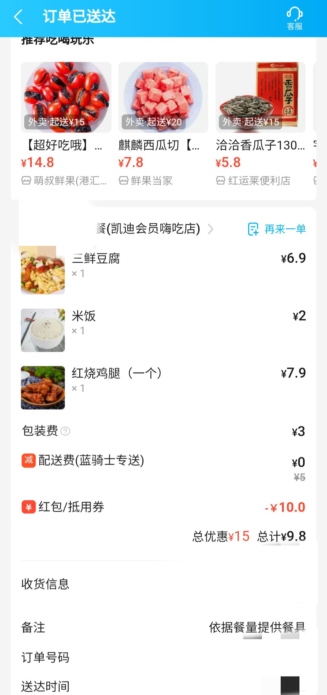 今天晚饭依旧点的外卖,工作原因没时间做,也不怎么会做,我就点了两个菜结果收到了三个,我以为发错单了,就给店家打电话,结果店家说,你是不是经常订的,我说是,他说,那这是送的,不是弄错了