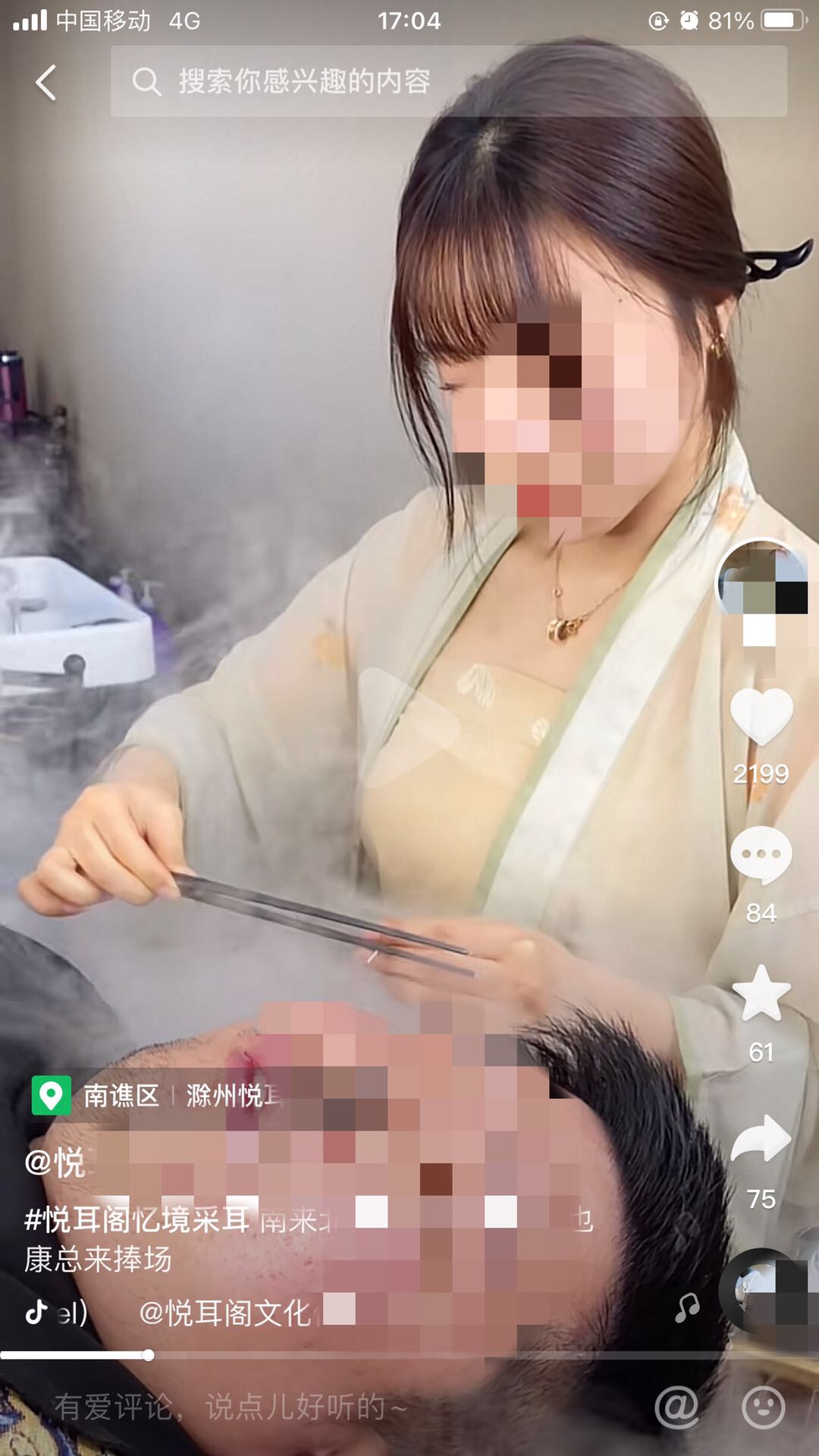 悦耳阁弄耳朵真有那么舒服吗?老公被抖音上的宣传迷住了,总想去!也不知道是想去掏耳朵还是想看人家小姐姐