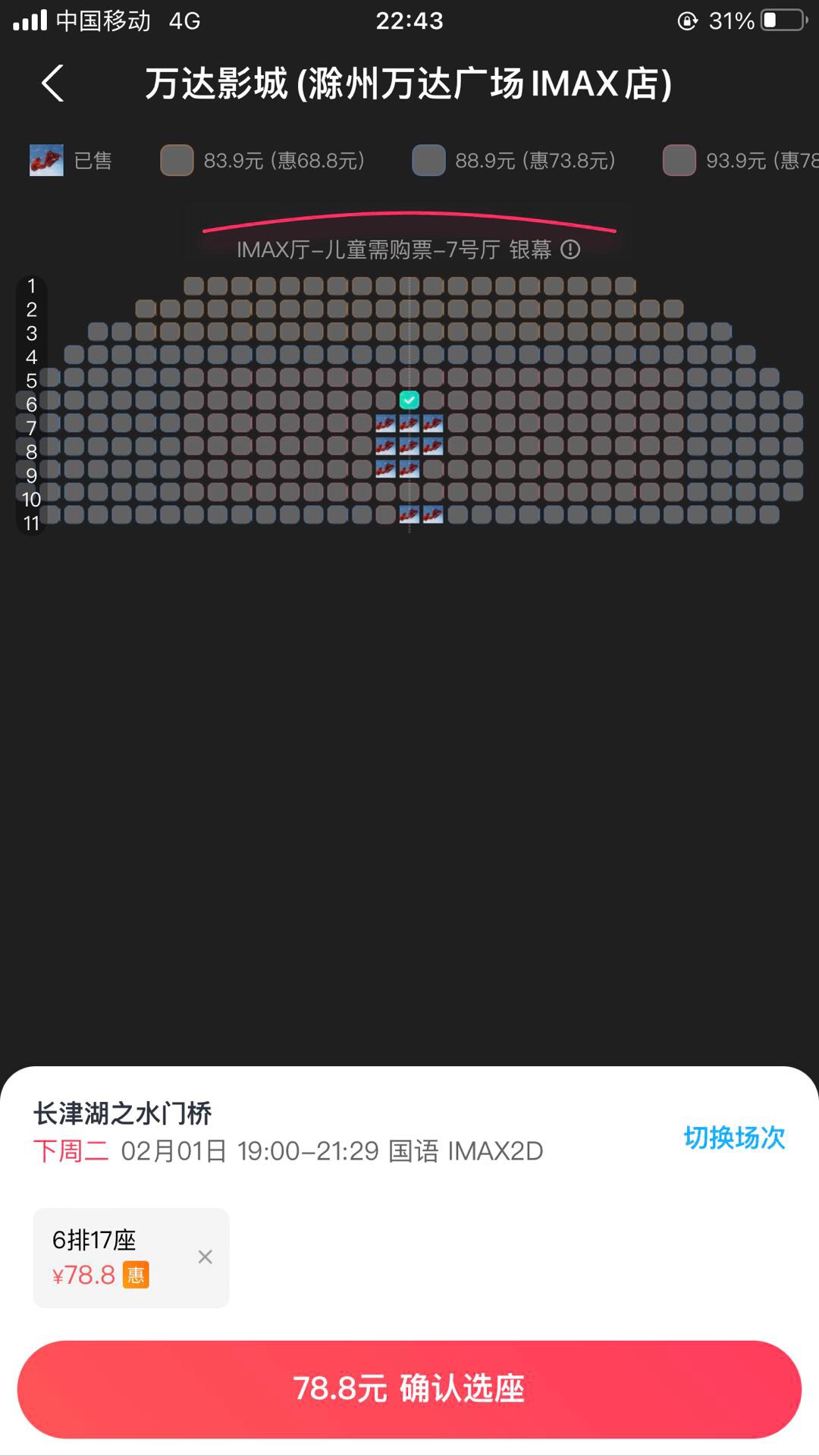 想着过年看个电影,就看了下电影票,我滴乖,那个票价吓我一跳,一个2D电影票价没有低于50的,最贵的要78.8一张,今年过年的电影票怎么这么贵?我记得以前就二三十