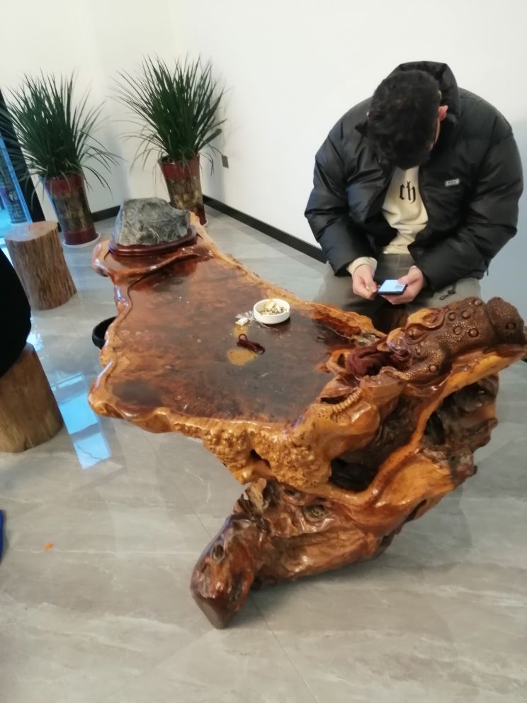 浴毕,倚坐茶桌旁来杯清茶,看着手机,岂不美哉