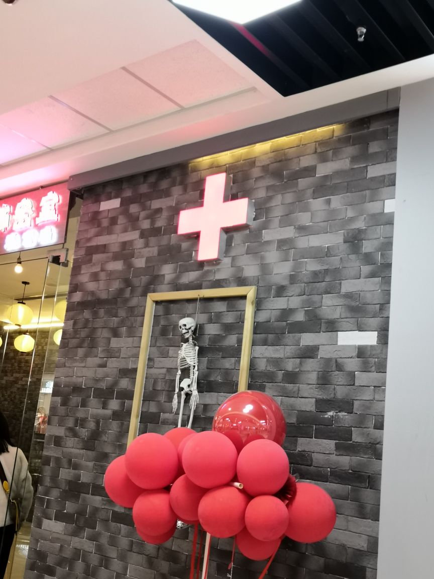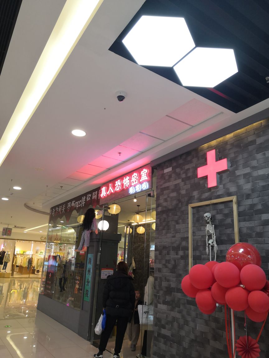 这家店说实在的有点吓人,昨晚在商场里面逛的时候路过了这家店,刚一开始没注意,转头看到一个女的脸就盯着外面,后面才发现是假的,但是猛地一看真的怪吓人,咋想起来开在商场里面的昨晚做梦还梦到来着呃呃呃,噩梦啊