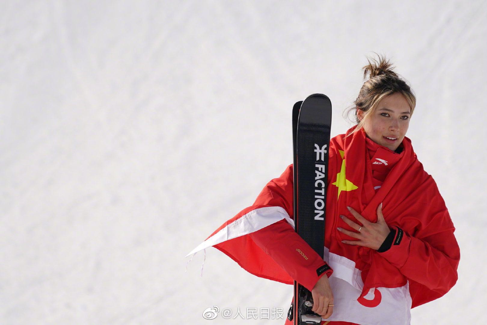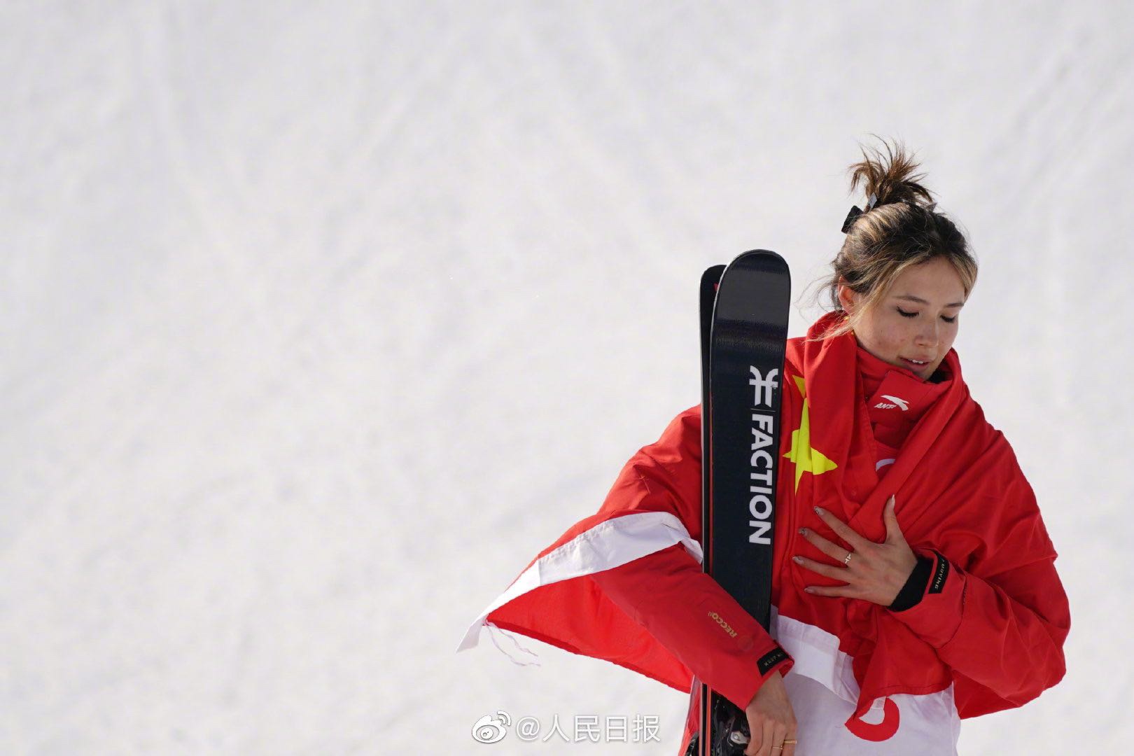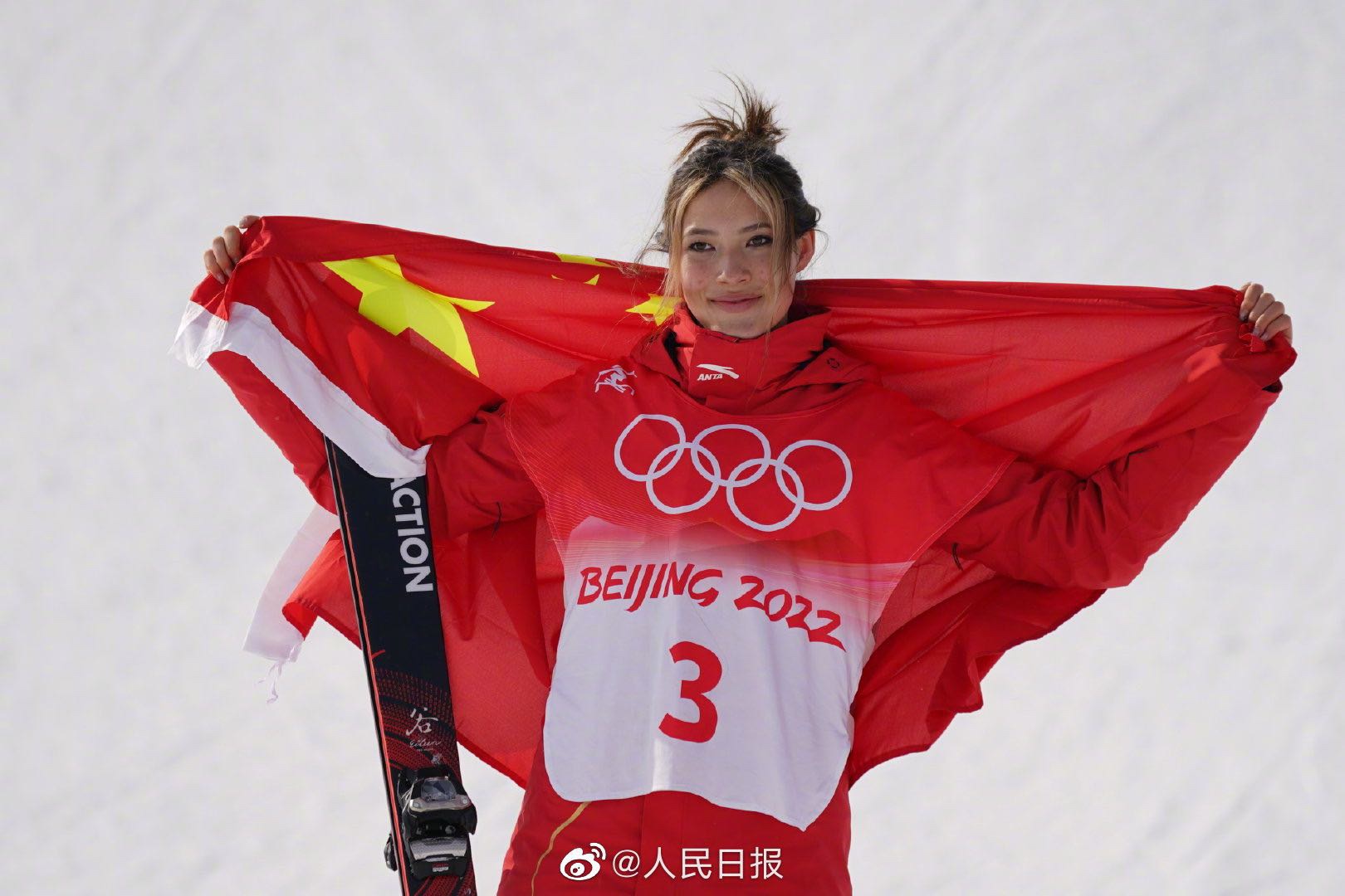 原标题:分享几张谷爱凌今天身披国旗的照片