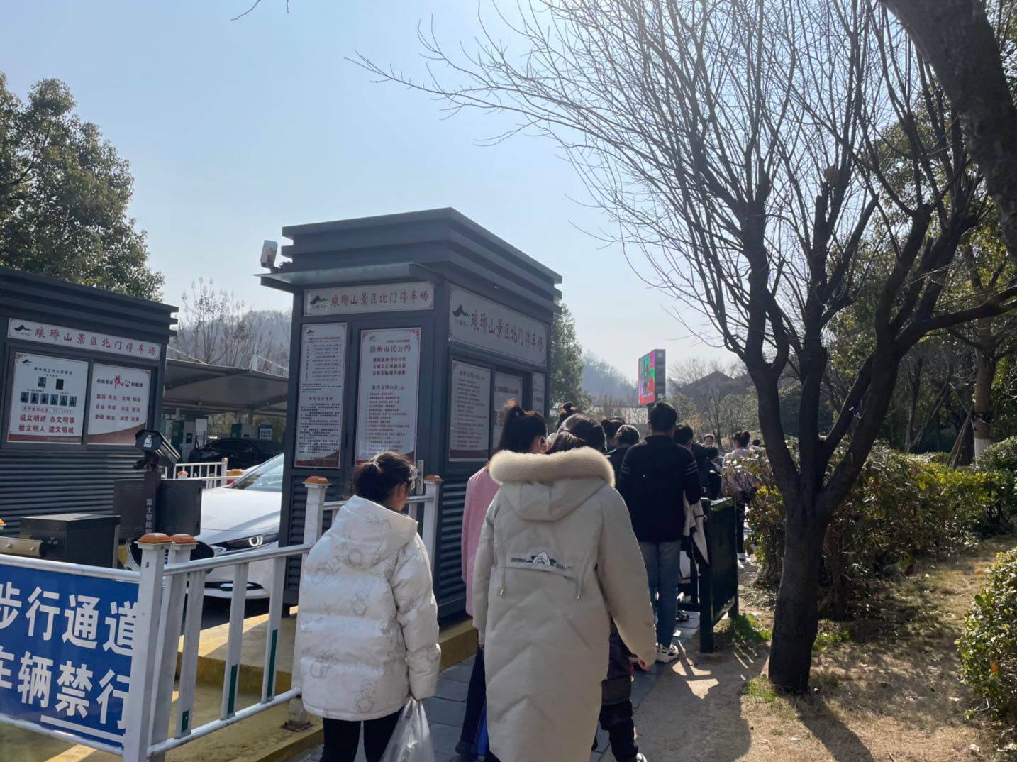 今天风和日丽,来琅琊山玩的人超多,游客中心门口排起了队,不管是汽车停车场还是电瓶车停车场,都爆满