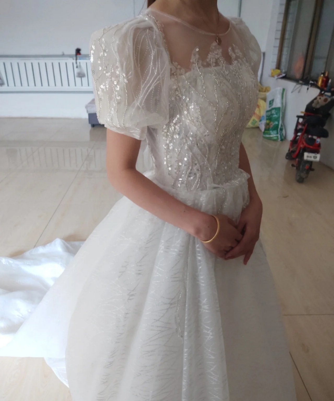 为了给男友省钱,网购的婚纱350元,我感觉质感还不错,这个价位真的可以了,亮晶晶没毛病,难道我的要求太低了吗?