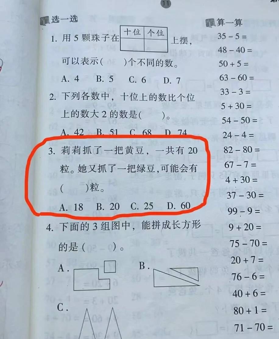 网上看到的,现在一年级怎么会有这种题目啊?感觉这个题目条件根本不充分啊,到底应该怎么解?
