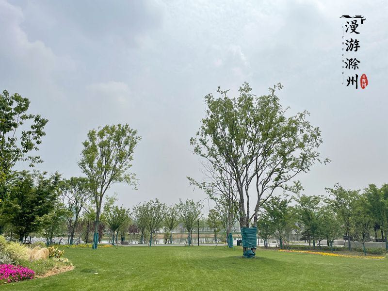 从留轩出来,不远处则是公园北边入口,向公园望去,是一片绿油油的草坪地,草坪上种满了各种花和树。再往里走,能看到一片水塘和一座桥,倚在桥栏边,风儿吹起,则能看到水面上荡起一圈又一圈好看的波纹。
