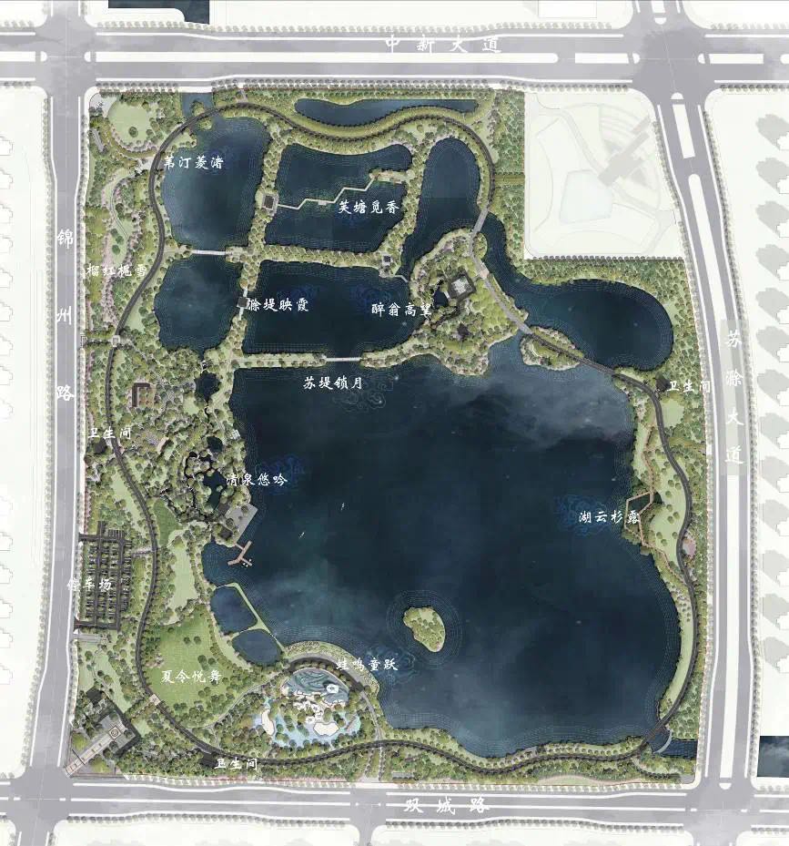 公园被分为“一湖、两堤、十景”的结构。内设展现苏州、滁州文化特色的苏园、滁园、苏堤、滁堤;有孩子们喜欢的游乐设施,也有成人运动健身、休憩交流、赏荷观鸟的活动场所。