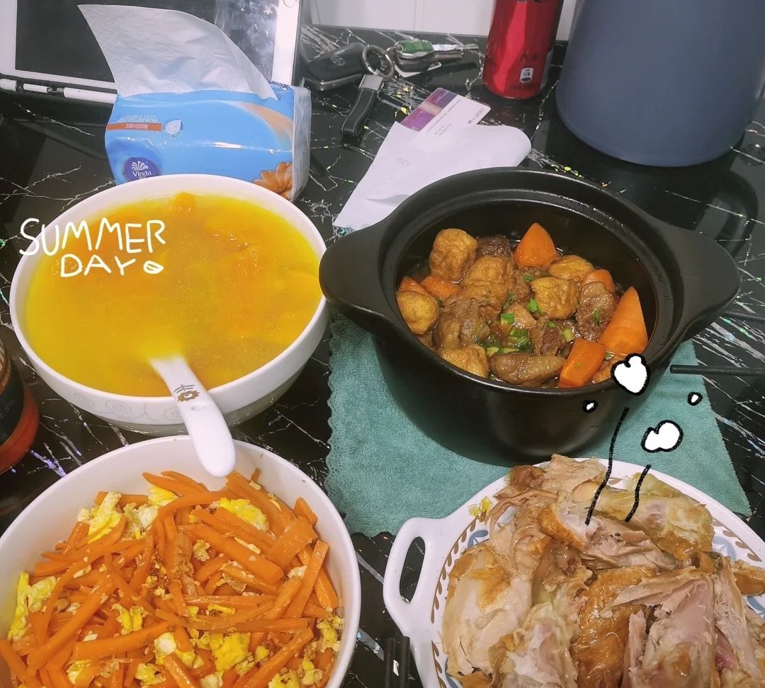 嘿嘿,有个会做饭的男朋友真好每天都有好多好多好吃的,爱你。虽然我现在已经胖了10斤,可他还是觉得我太瘦了,想要我胖一点嘿嘿继续努力