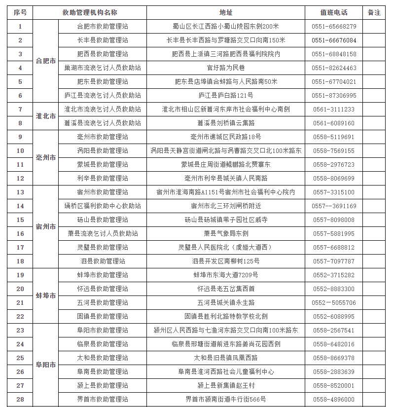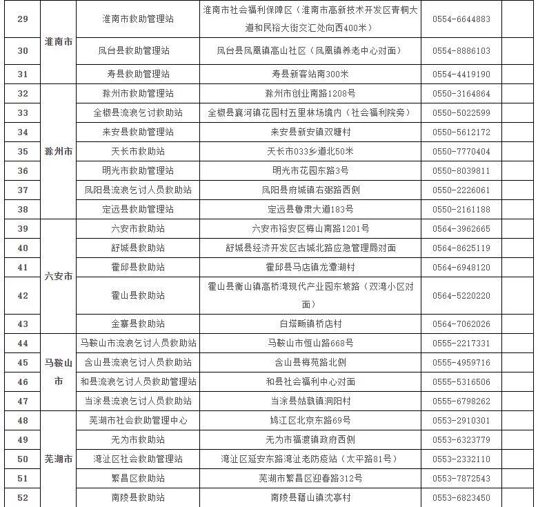 省民政厅已及时更新发布安徽省救助管理机构联系方式及地址,方便各地市民及时求助和反馈救助线索。