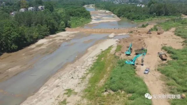 8月14日消息,持续晴热高温少雨天气,造成怀宁县境内多条主干河流断流,沿线8个乡镇的农业灌溉和生活用水困难。怀宁县黄龙镇组织15台套大型机械、40多名工人,昼夜奋战,在皖水与珠流河交汇处的双河口河床上,修建拦河堰。