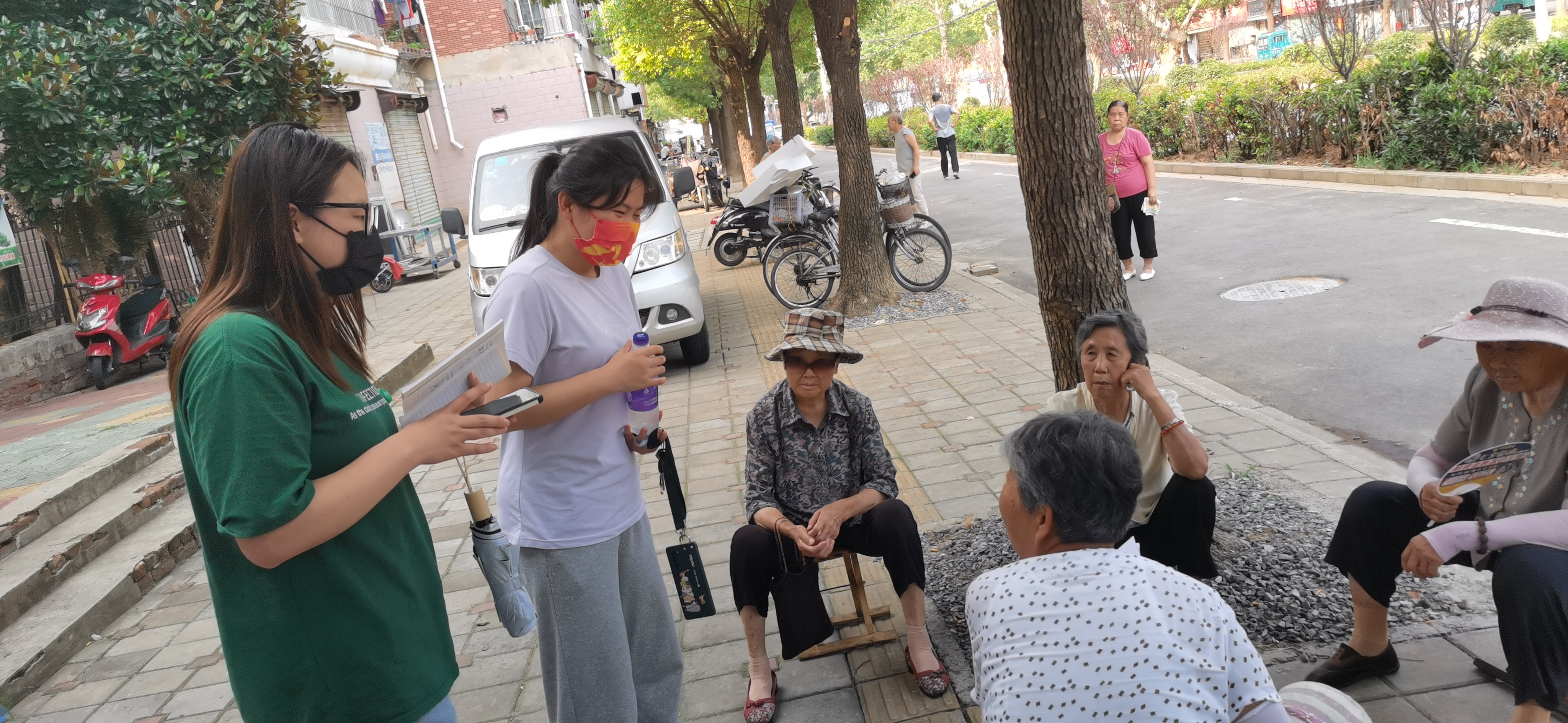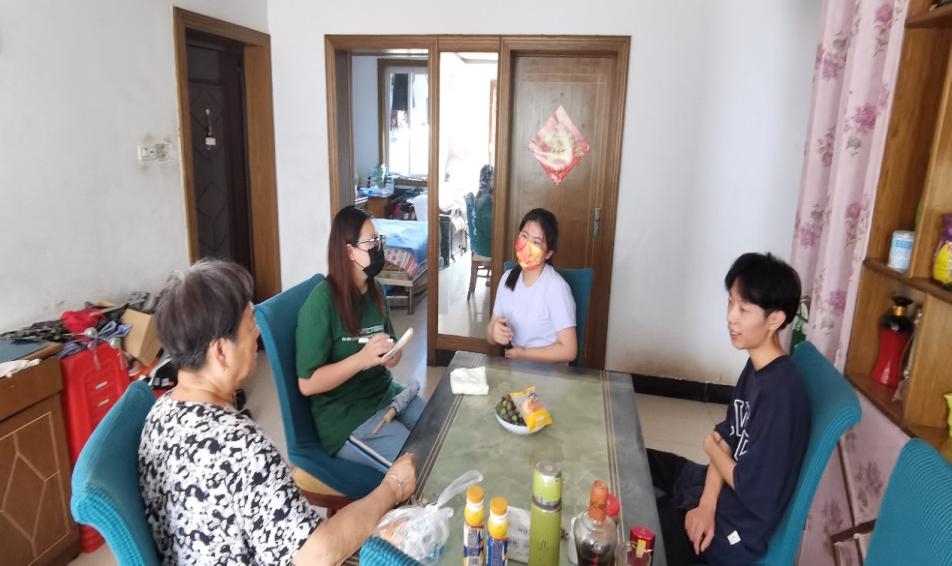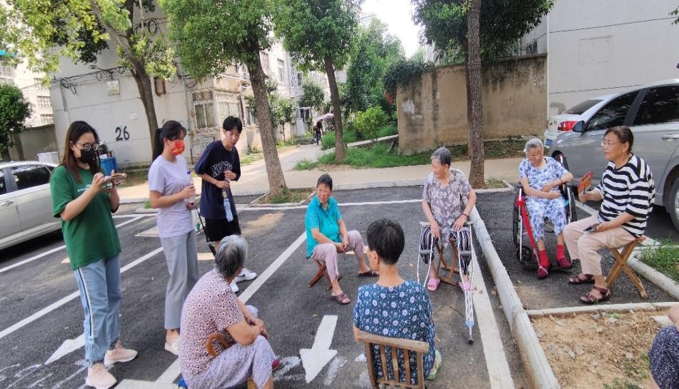 图为实践小分队与社区老人就政府提供的养老服务情况进行走访。中国青年通讯员 张俊功 摄