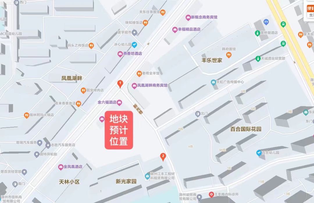 宗地位于凤凰西路与新光巷交叉口西南侧,宗地号:341102005003GB00048,占地面积:11.97亩,规划用途:商业规划指标:容积率≤1.5,绿地率≥20%,建筑密度≤50%,建筑限高60米,出让年限40年,出让起始价:2394万元,起始楼面价:2000.5元/㎡,成交总价2414万元,成交楼面价2017元/㎡