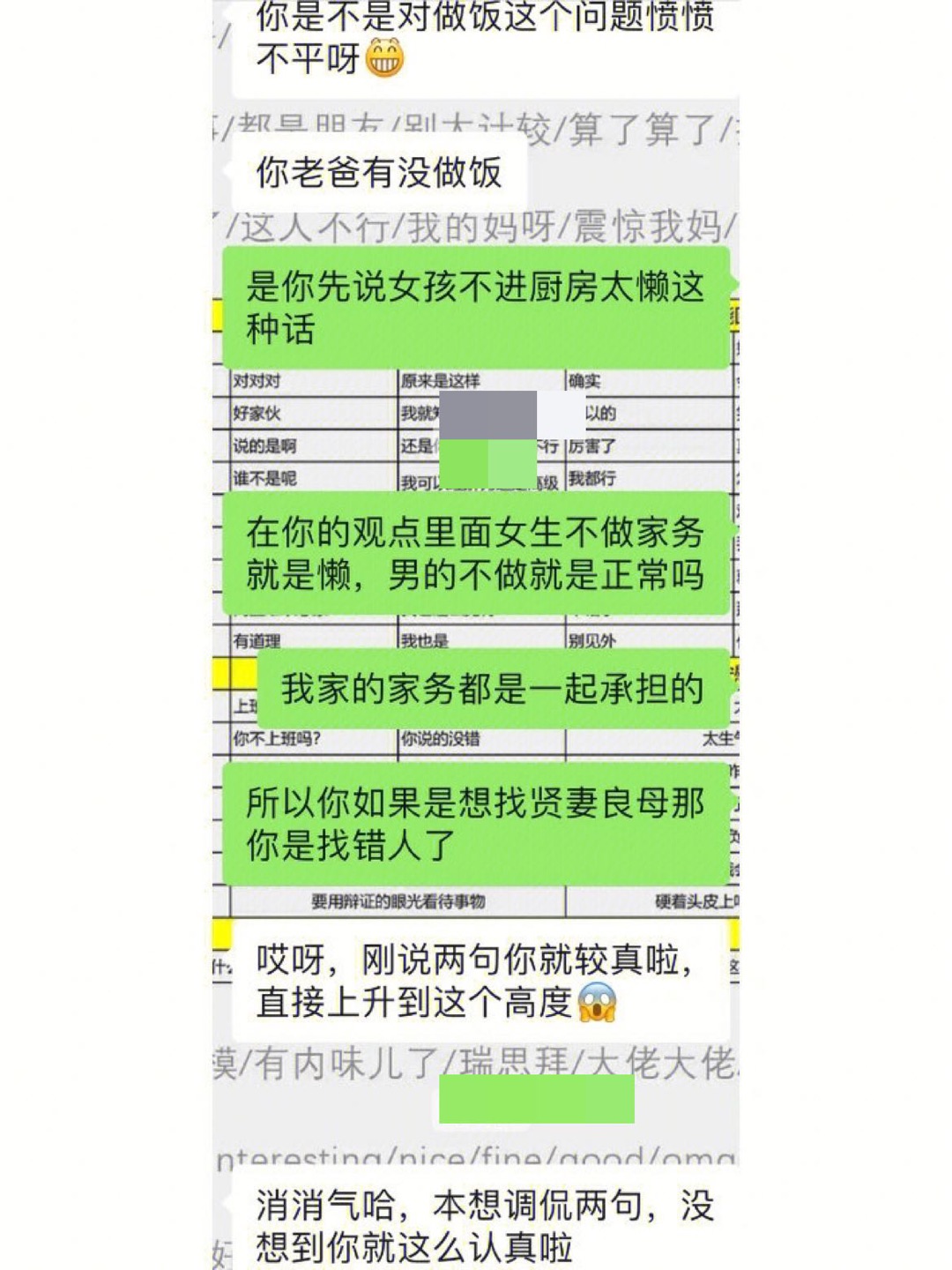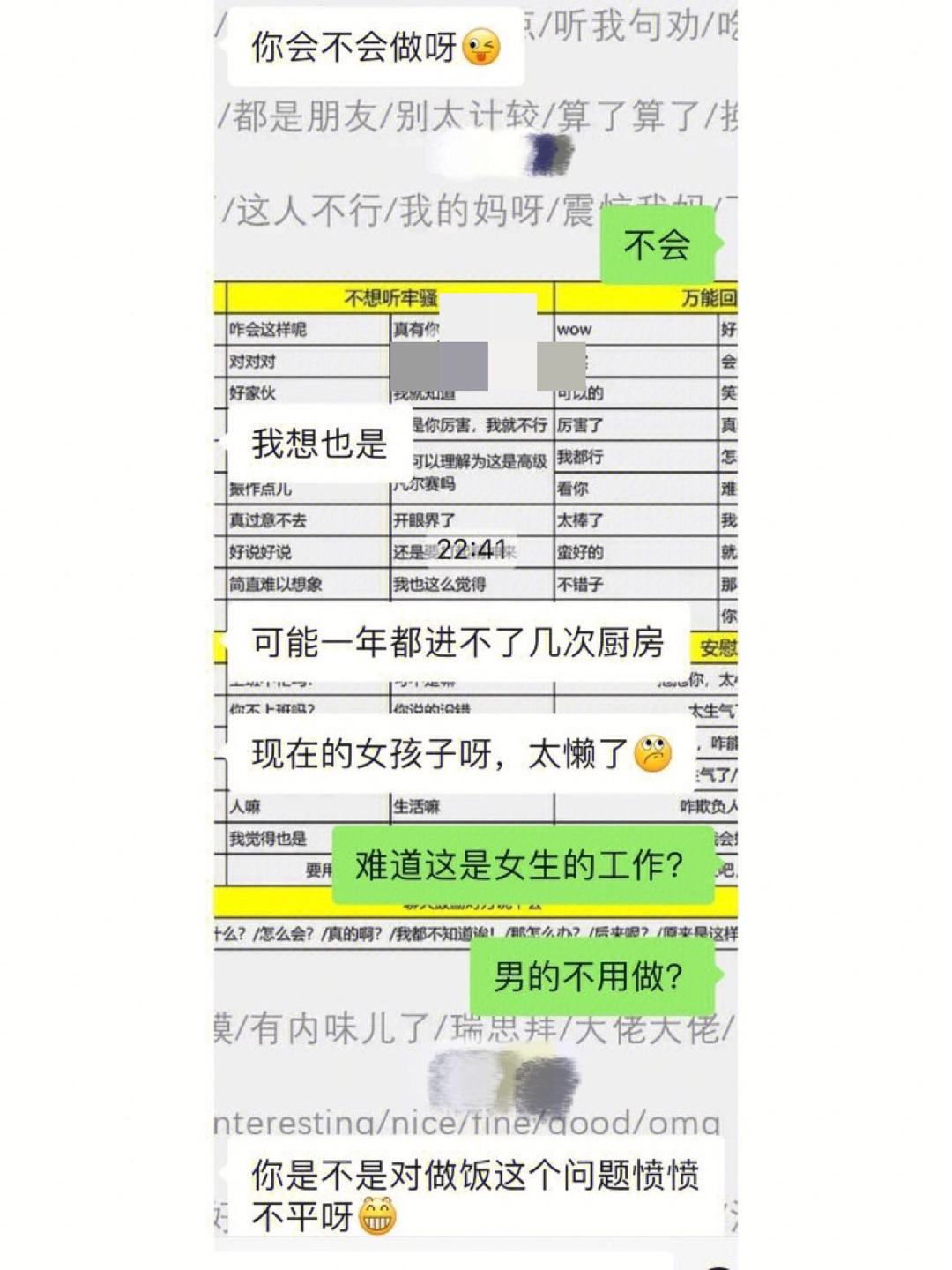 女生就该会做饭,承担所有家务?伺候你就跟伺候老佛爷一样吗?相亲男嫌现在的女孩子都不进厨房都太懒了, 但两个人在一起过日子,难道不是一同分担吗?凭什么所有的活都该女生干呢?还说我太认真,呵呵你都把这话说出来了我看你那么多年的书也是白念了