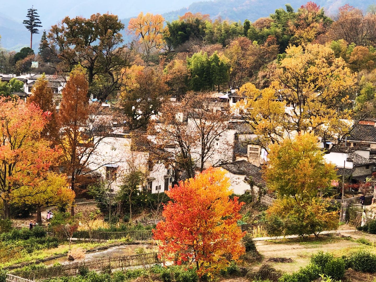 塔川是安徽黄山市的一个徽派山村,每到秋季,大自然仿佛打翻了调色盘,满山树叶色彩斑斓,从黄、浅红到火红,极富层次,美不胜收。