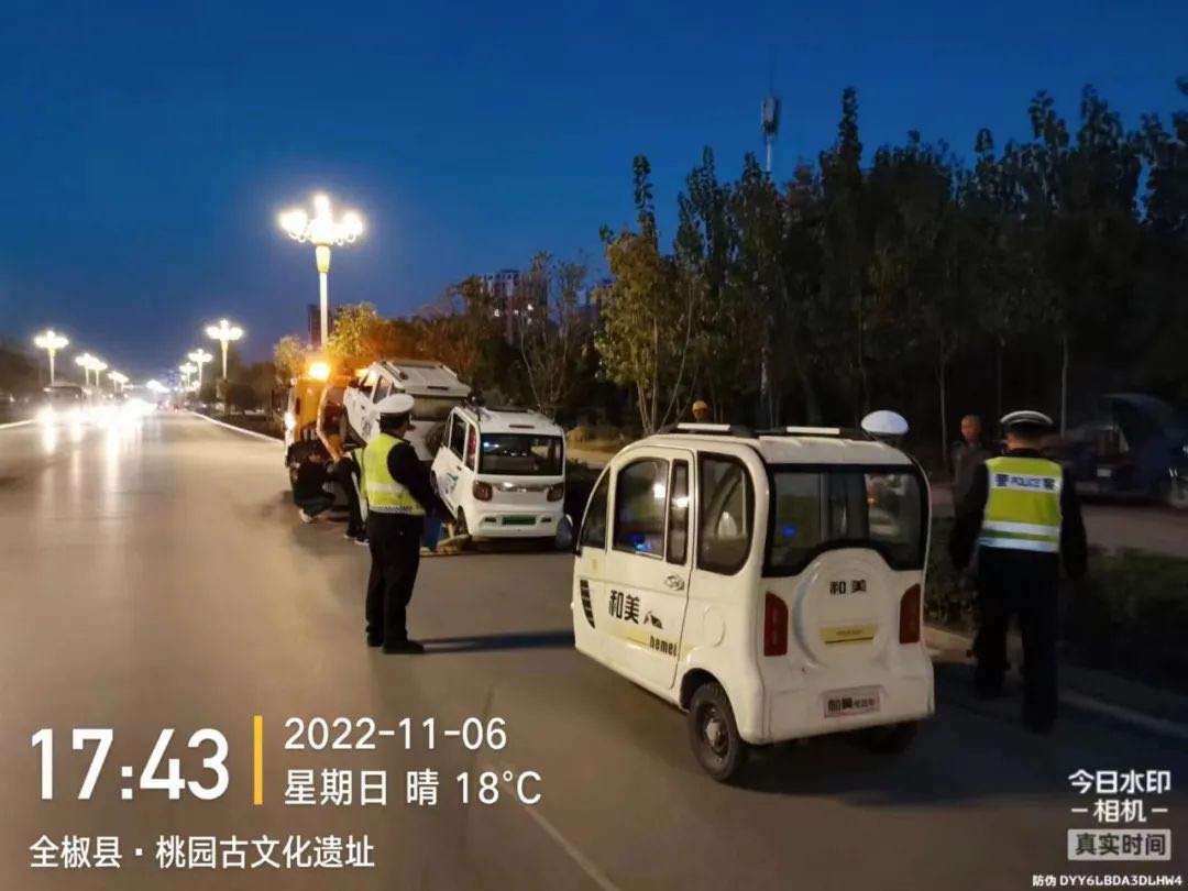 此次整治工作,采取定点查处与流动巡查相结合的方式,以校园周边为重点,在新华路、儒林路、南岳东路、港口路设置查扣点,对发现的违法上路行驶、违法载人的整治车辆进行劝导查扣,发现一辆、查扣一辆、教育一片。 截止11月7日12时,联合执法整治共查扣违法上路行驶、违法载人车轿式电动三、四轮车174台。