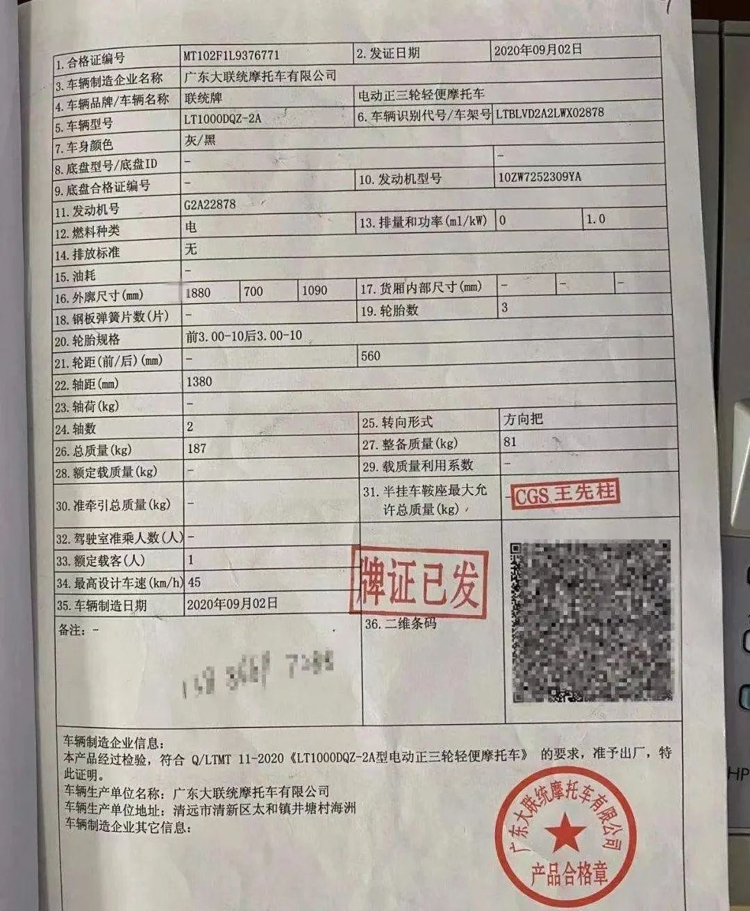 近日,不断有市民到交警部门咨询,自家的电动三、四轮车究竟能不能正常上路行驶?哪些电动三、四轮车能够在车辆管理所合法注册登记? 对此,就符合国标的电动三、四轮车如何登记问题为大家解疑释惑,并对能办理注册上牌的主要电动三、四轮车辆中文品牌、车辆型号、车辆名称进行公布。希望对您购买到符合国标生产的正规车辆,以及顺利注册上牌,合法上路通行有所帮助!问:电动三、四轮车注册时,车主需要提交哪些资料?