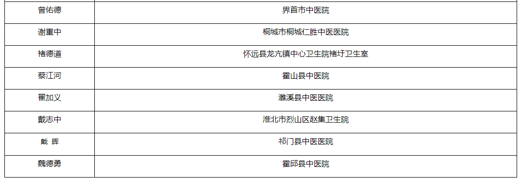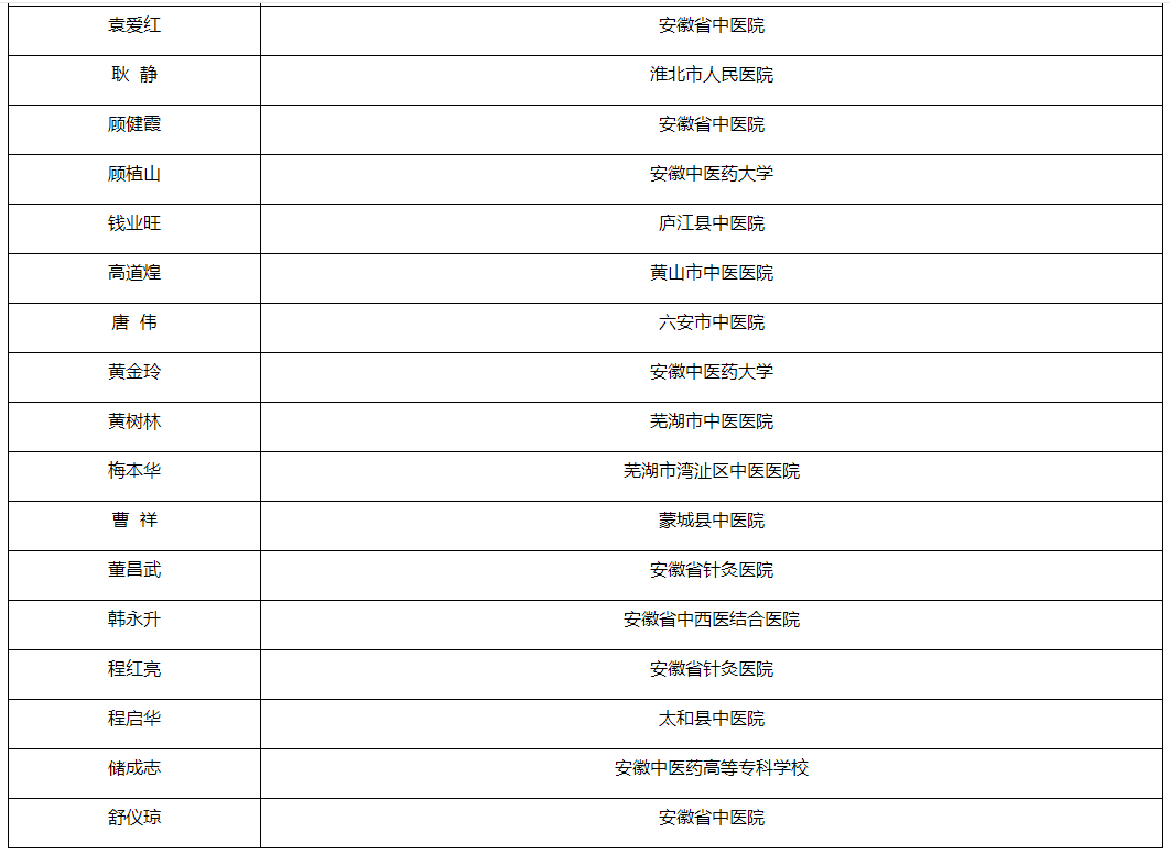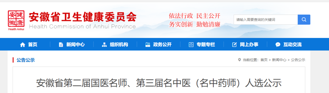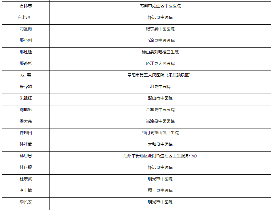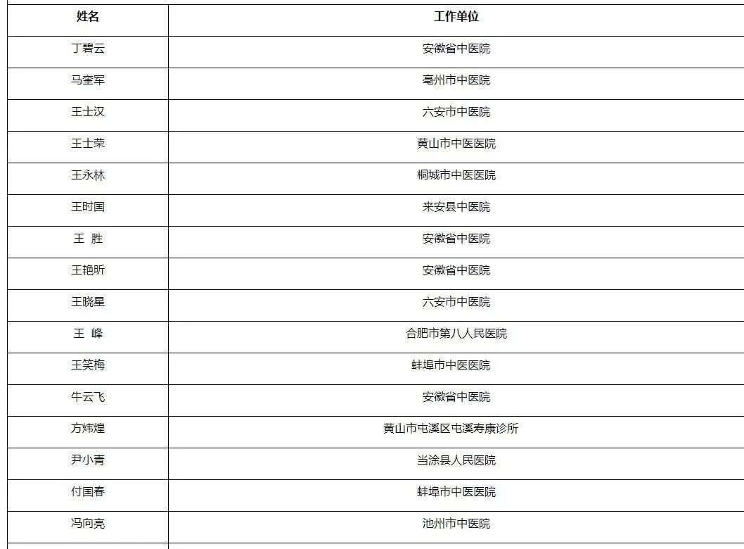 11月21日,省卫健委和省中医药管理局发布人选公示。其中,安徽省国医名师人选10人,安徽省名中医人选69人,安徽省名中药师人选10人,安徽省基层名中医人选97人。