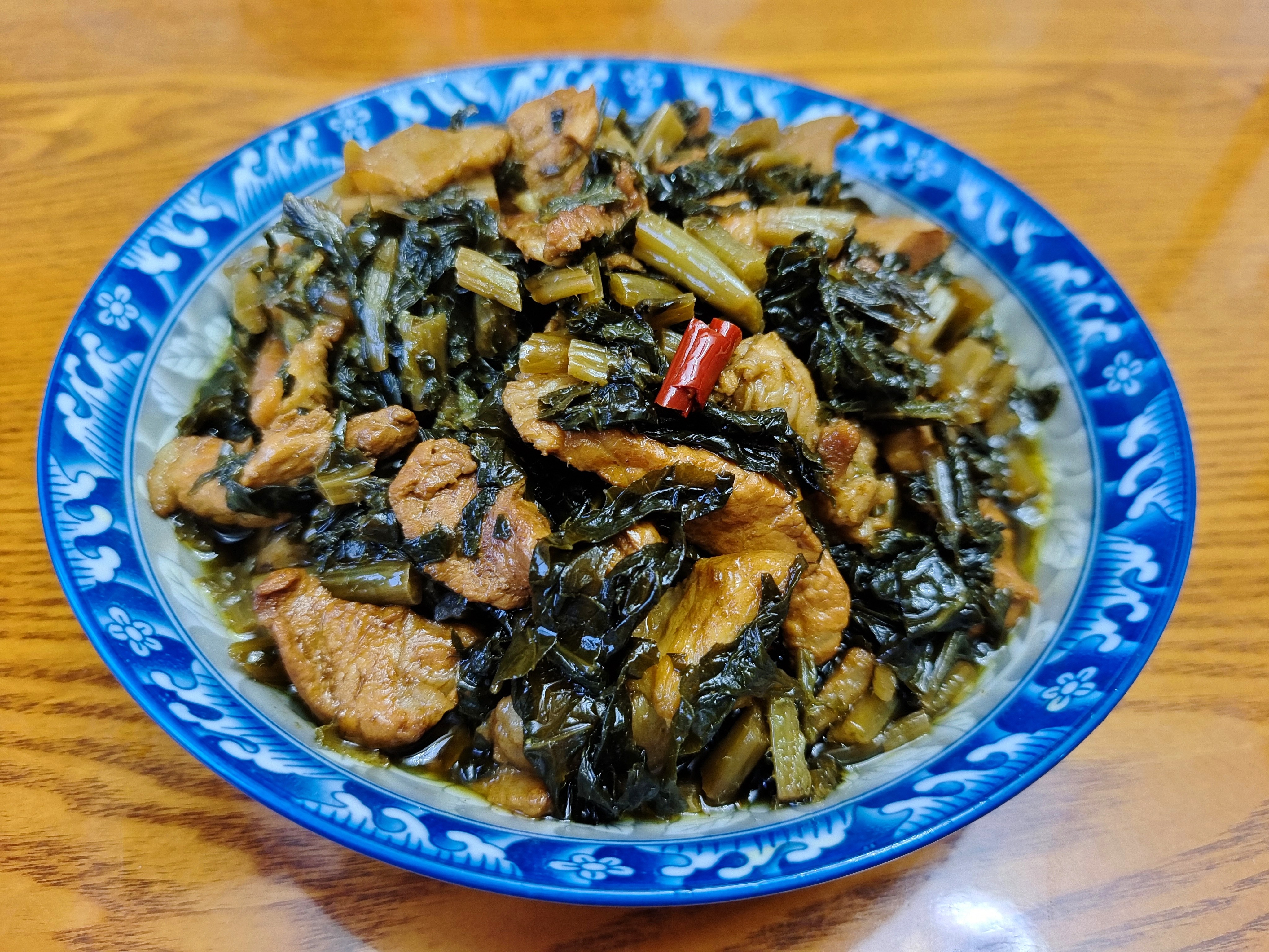 原标题:鲢鱼冻野辣菜烧肉就这个红薯糊糊吃,还行吧
