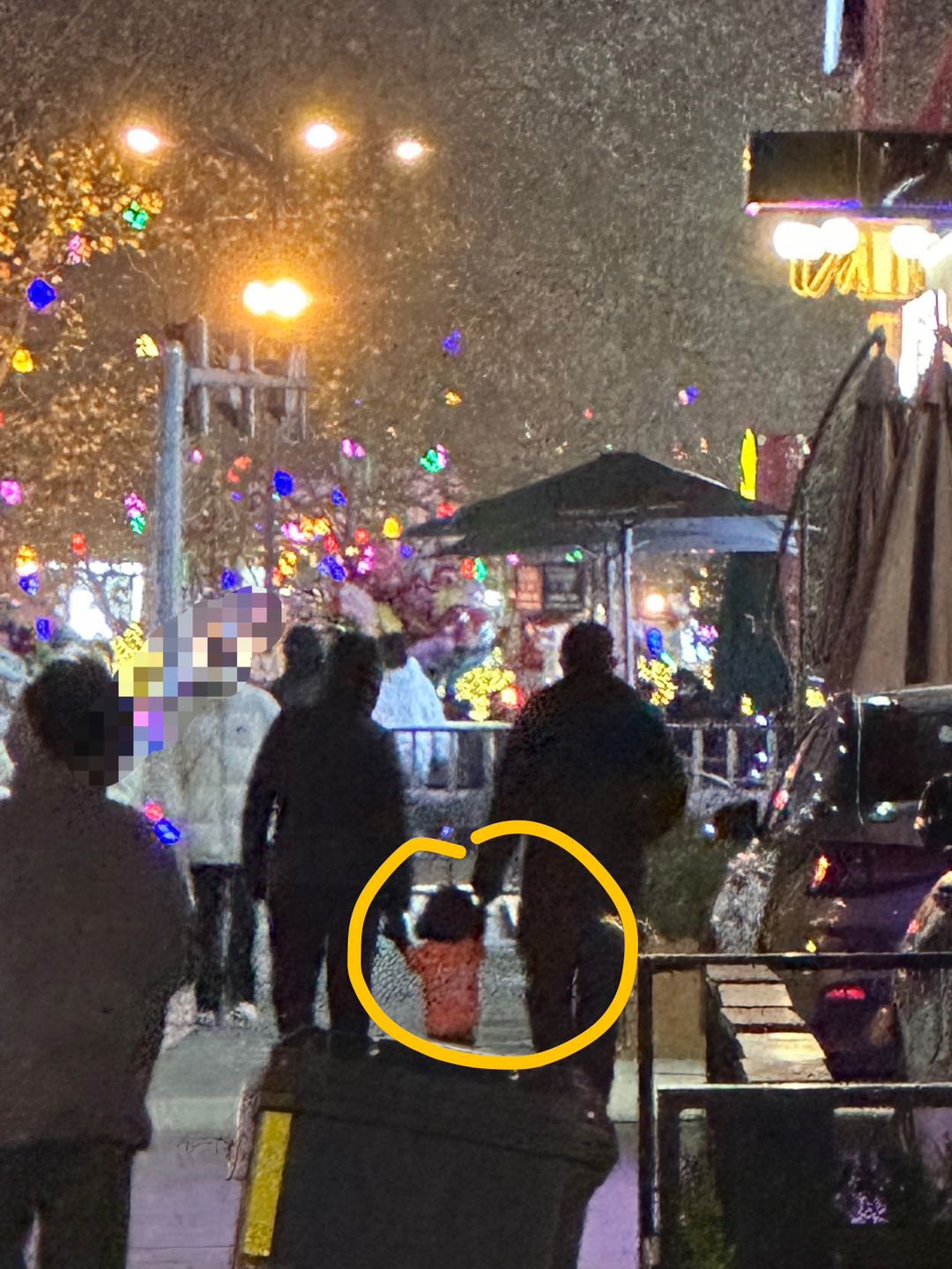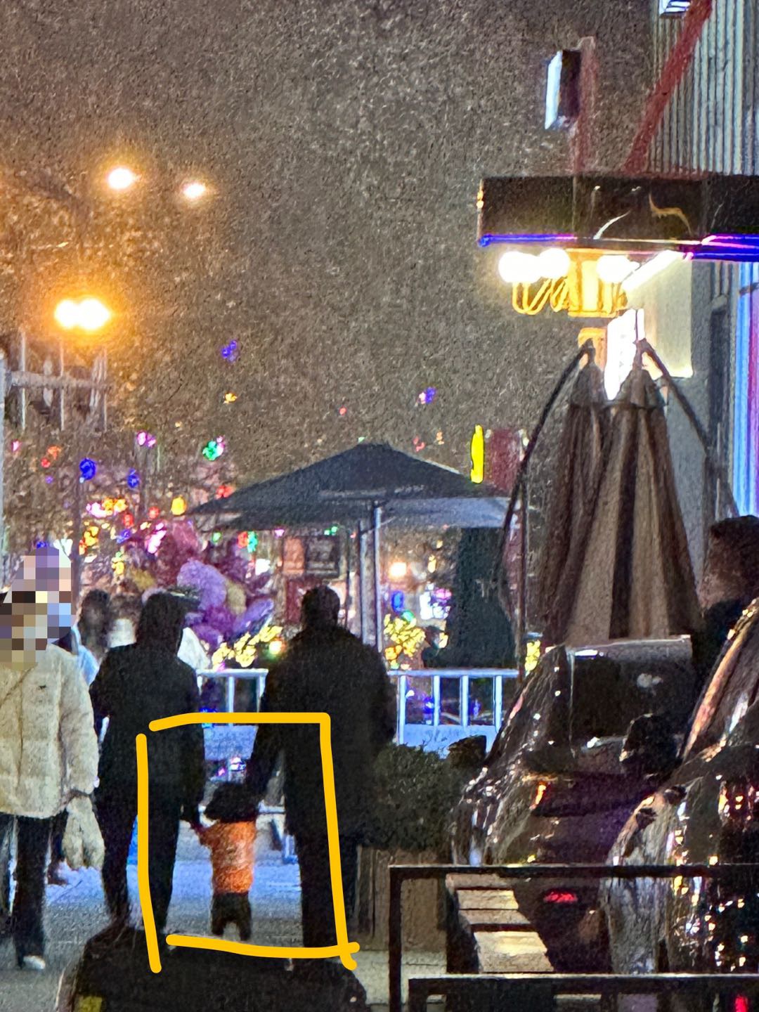 昨晚在滁州苏宁门口,看到把狗当成孩子养的!两人牵着狗,让它站着走了一路。当时看到愣住了,走好远才想起来拍照,所以画面有点模糊,看着像是下雪。