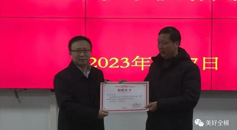 全椒中学主要负责人向邢金松发放捐赠证书,对邢金松爱心捐赠表示感谢。