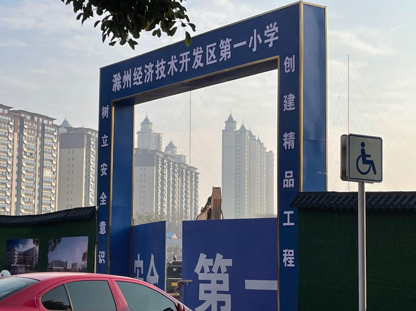 滁州经济技术开发区第一小学动工了,有挖掘机作业,旁边还挂了效果图,看着很有档次。这样硬核配套,周边小区房价可以涨一波了吧