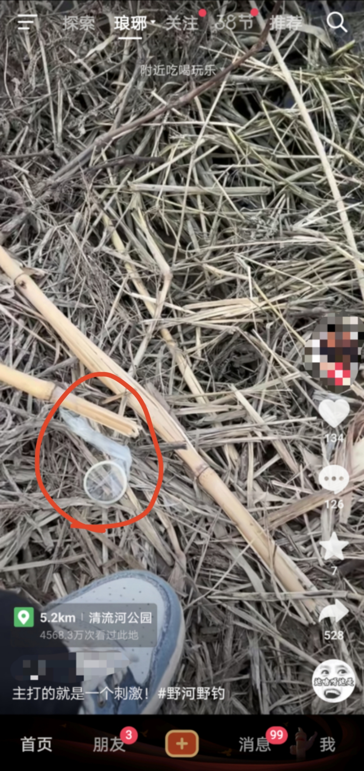 抖音上看到的,滁州清流河附近野钓,发现已拆封的避孕套,现在人玩的这么刺激的吗?