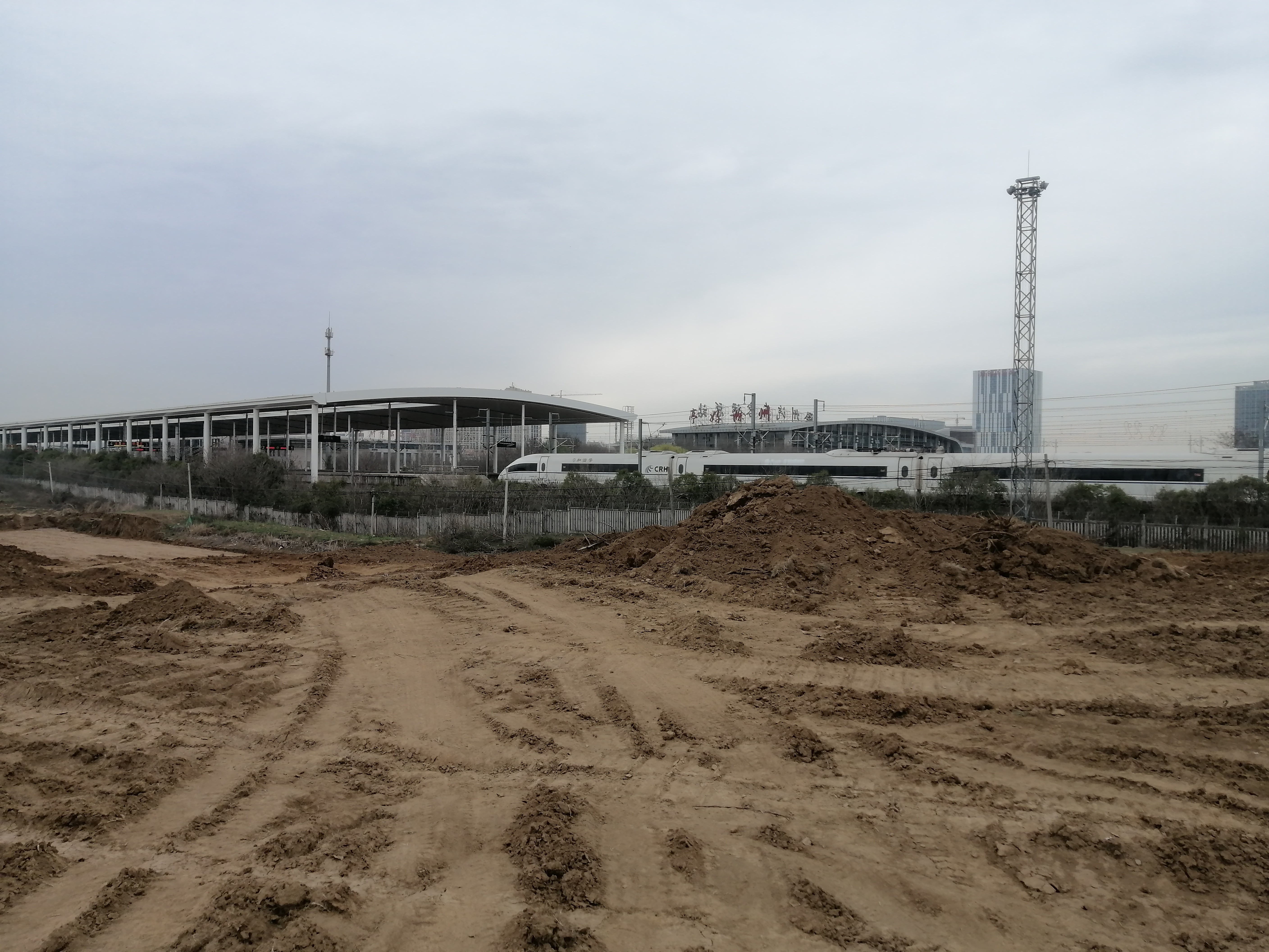 紧贴着高铁站南边在施工,不知道建的是南广场还是北沿江高铁?