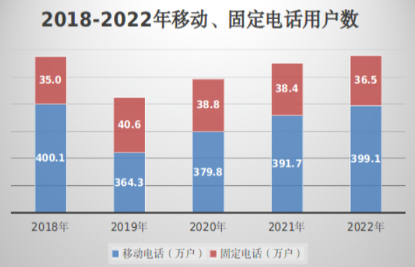 2022年,全市邮政行业业务收入累计完成19.0亿元,同比增长11.1%,其中邮政寄递服务业务收入为1.5亿元,同比增长14.1%。全行业业务总量累计完成20.9亿元,同比增长11.6%。邮政寄递服务业务量为10896万件,同比增长17.1%,其中快递包裹6212万件,同比增长32.6%。快递业务量累计完成16111万件,同比增长10.9%。全年电信业务总量[6]39.0亿元。年末,全市拥有电话435.6万户,同比增长1.3%,其中固定电话用户数36.5万户,同比下降5.0%;移动电话用户数399.1万户,同比增长1.9%。年末固定互联网宽带接入用户168.8万户。
