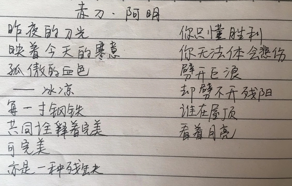 诗句中“劈开巨浪,却劈不开残阳”成了班里那段时间的流行语。就这样,在王陈的带领下,高中三年的压抑紧张的生活多了点诗,多了点诗一样的生活。